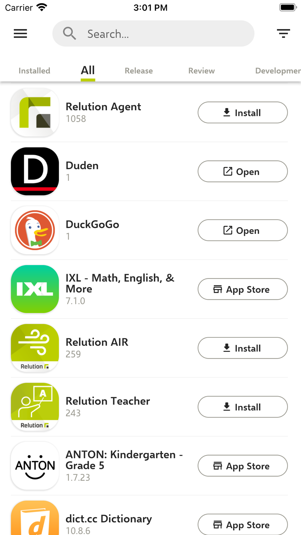 The Relution Agent is installed by default on the managed devices and is considered the central app for the MDM features functions. As long as the MDM profile is stored on the device, the Relution Agent cannot be deleted.