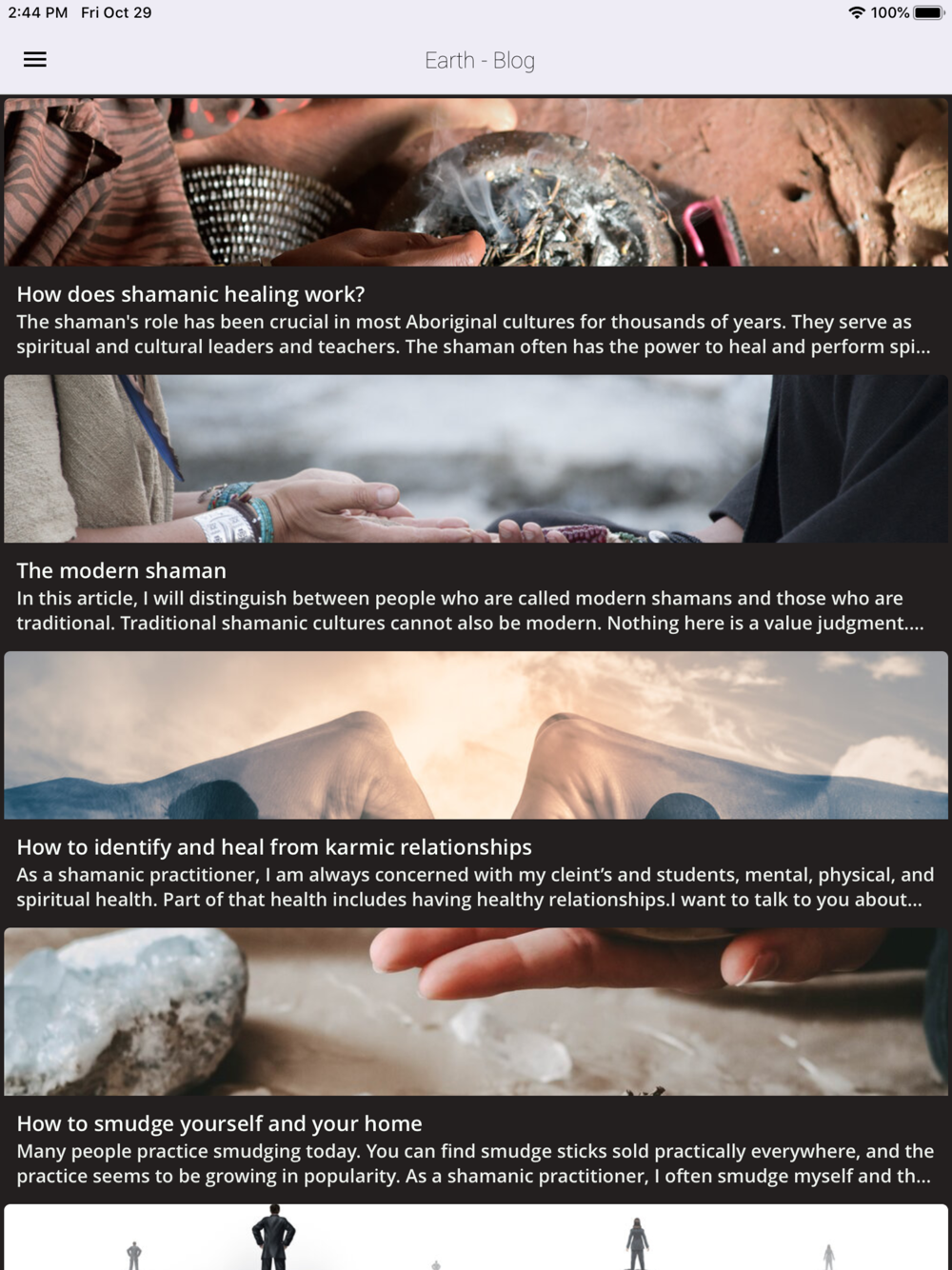 Shaman World is an app, created by a shamanic teacher, to support learning and practicing shamanism. It contains articles about shamanism, a podcast, videos, drumming tracks for shamanic journeys, and guided meditation.