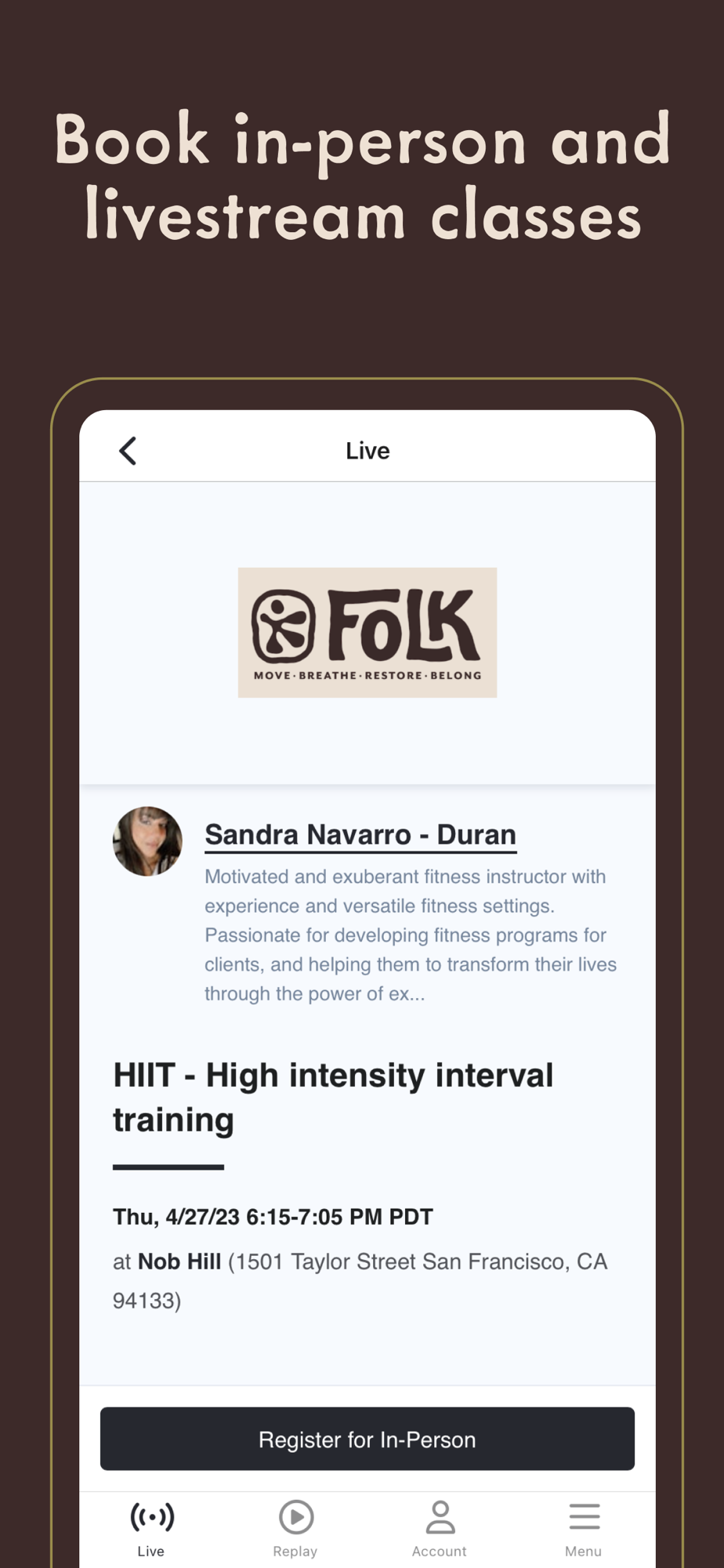 Folk is a collection of community-centered San Francisco yoga and movement studios where you’re invited to move, breathe, restore, and belong. Use this app to explore our in-person and online schedules + book your next class!