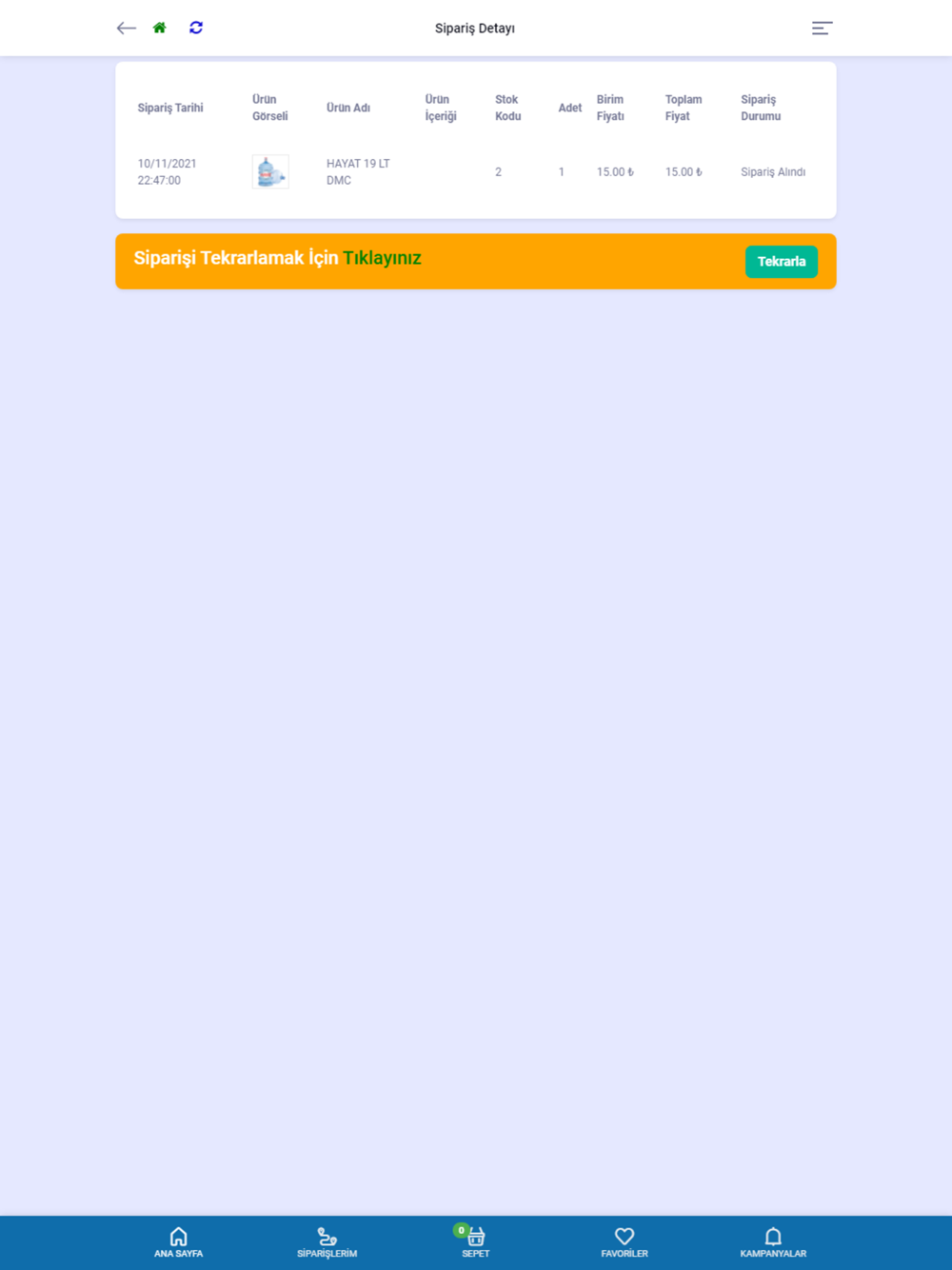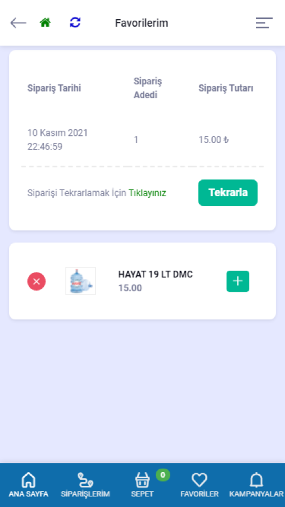 Geçmiş siparişlerinizi görüntüleyip tekrarlayabilme