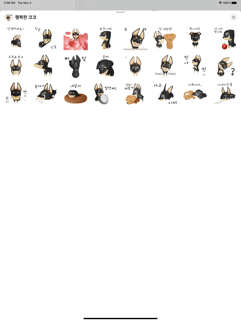 "행복한 코코”는 강아지를 키우고 있는 연인들이 사용하는 스티커입니다.