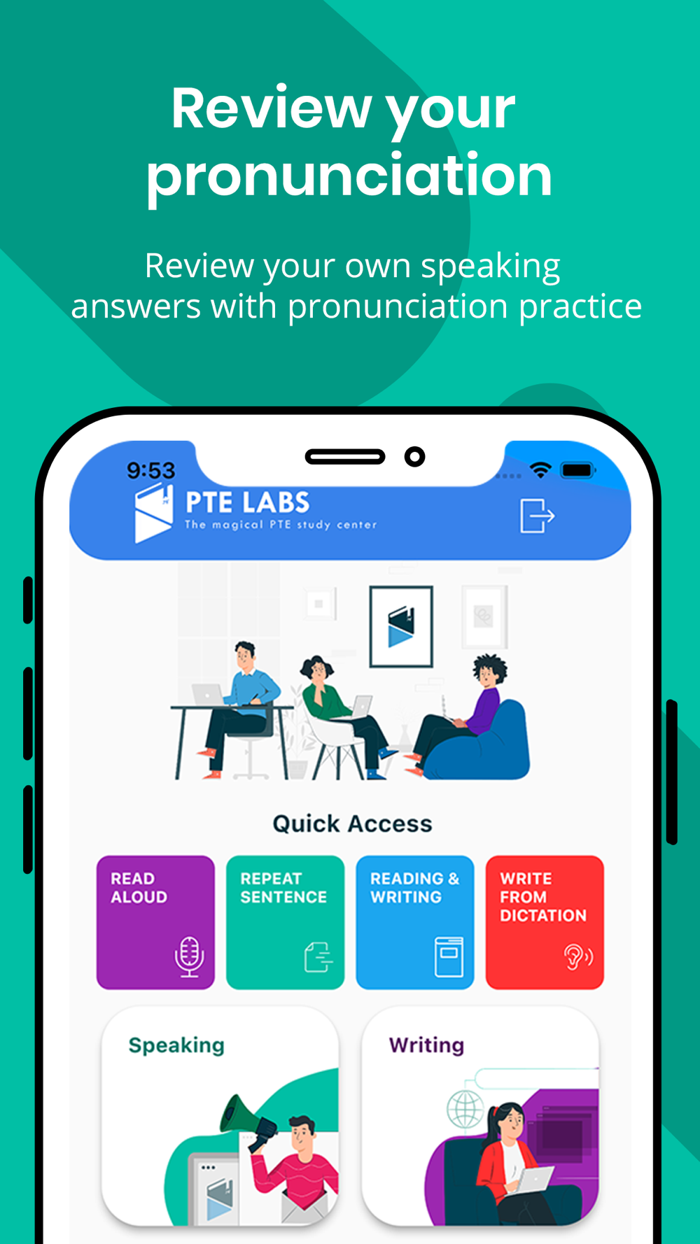 PTE Labs is an exam question practice APP for the PTE Academic Exam.