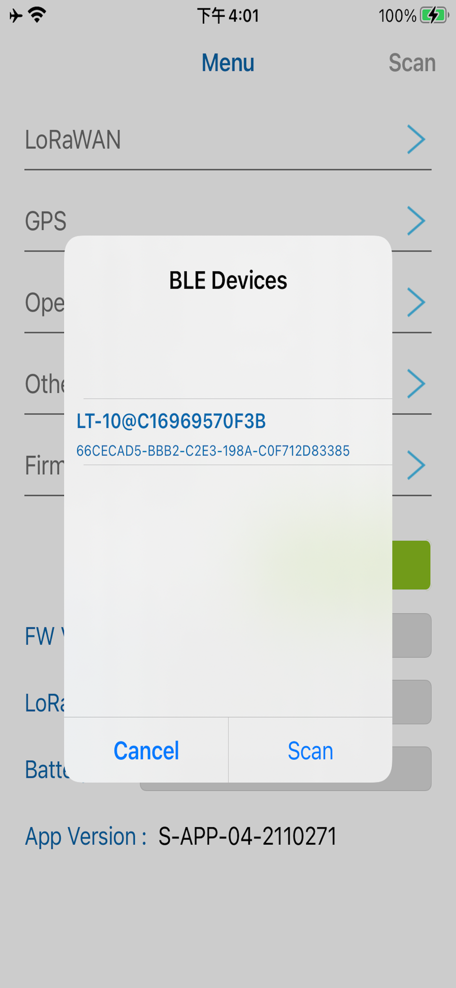 This is a Bluetooth low energy (BLE) application for GlobalSat LT-10 configuration. By synchronizing with your LT-10, you can check the battery capacity, FW/ APP version and current settings. Also, you can adjust LoRaWAN and GPS setting to fulfill different user scenarios. With this application and LT-10, we believe you will have a better experience.