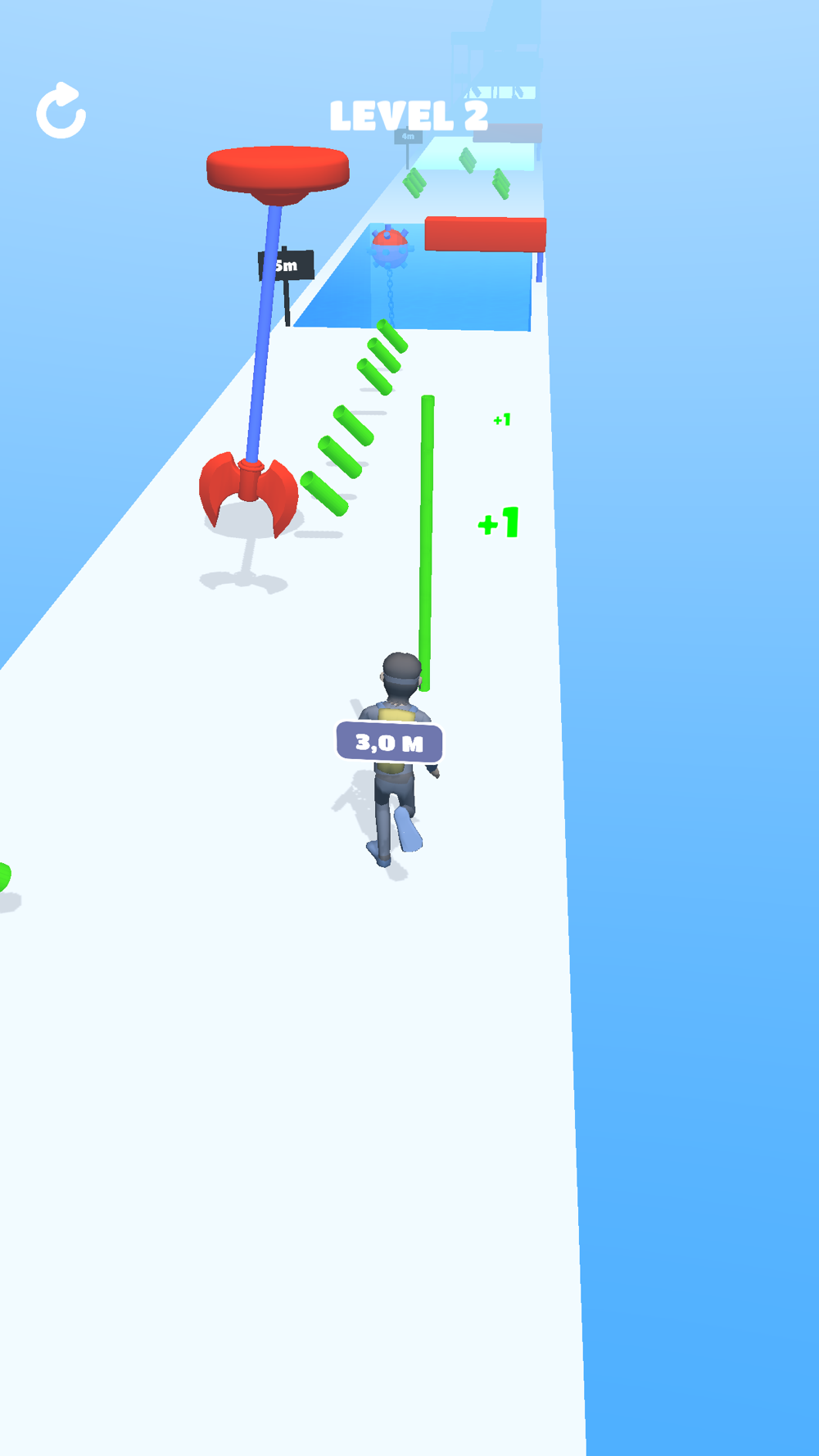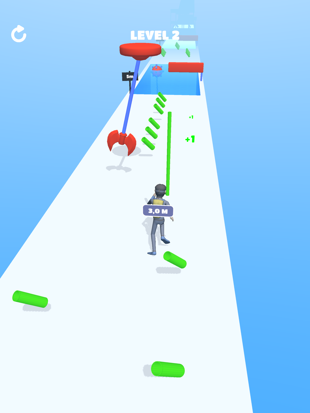 Run through obstacles, stack pipe and reach the end of parkour.
