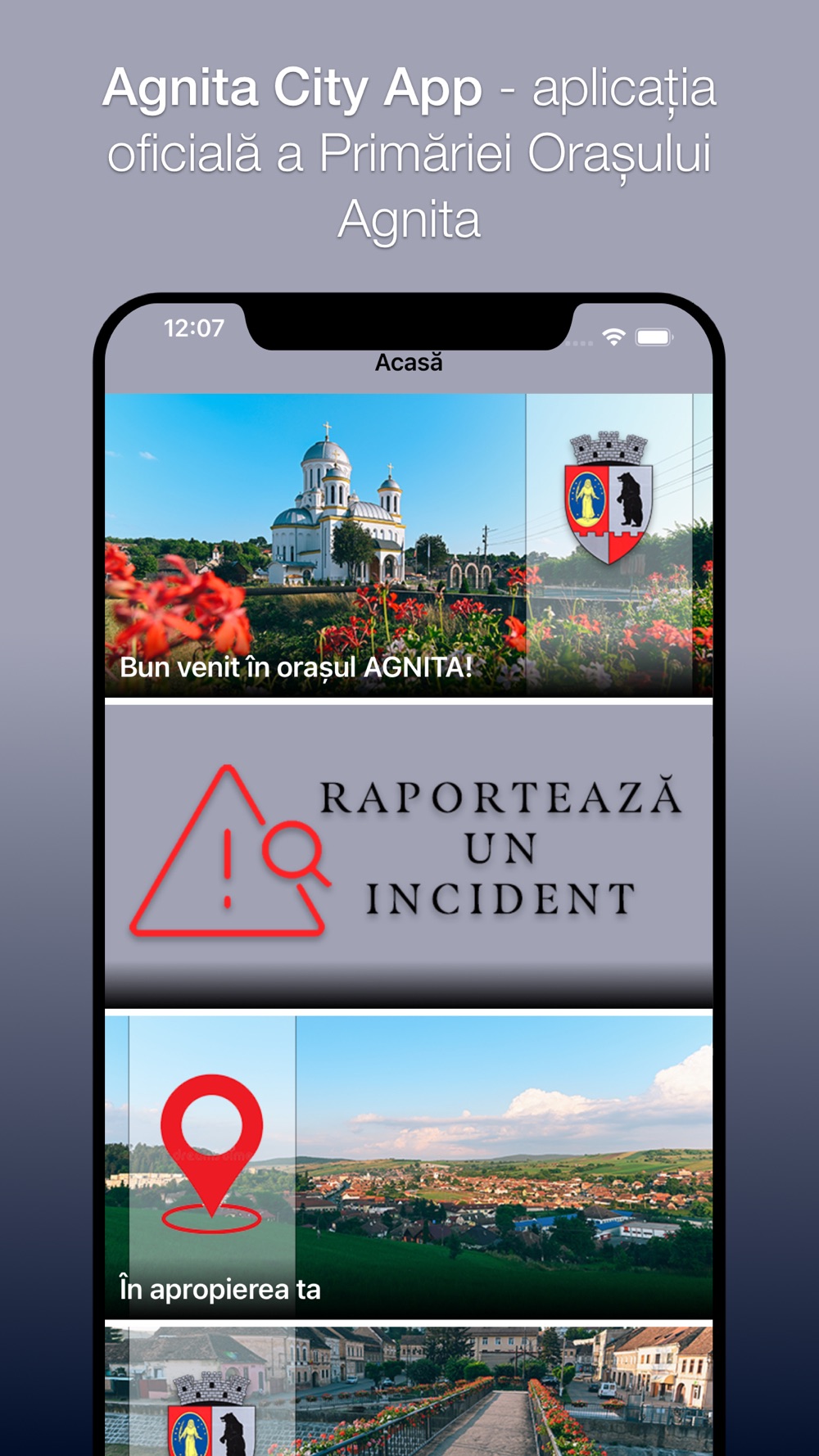 Agnita City App reprezintă instrumentul digital oferit de Primăria Orașului Agnita locuitorilor orașului dar și turiștilor regiunii Văii Hârtibaciului.