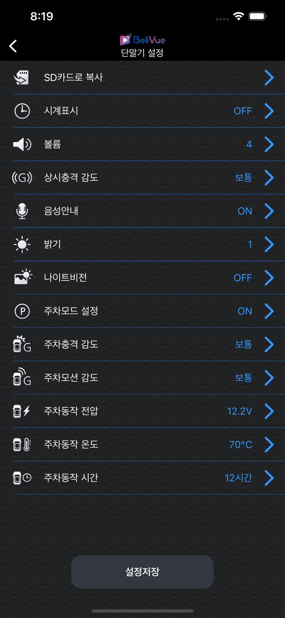 BeliVue 블랙박스의 무선랜 연결용 iOS 어플리케이션
