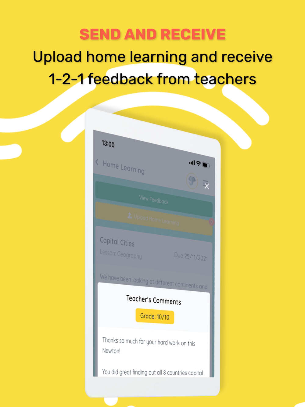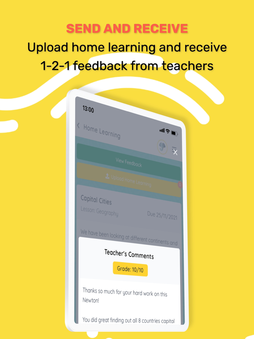 The perfect tool to send and receive homework online. Receive home learning feedback online securely and direct to the pupil.