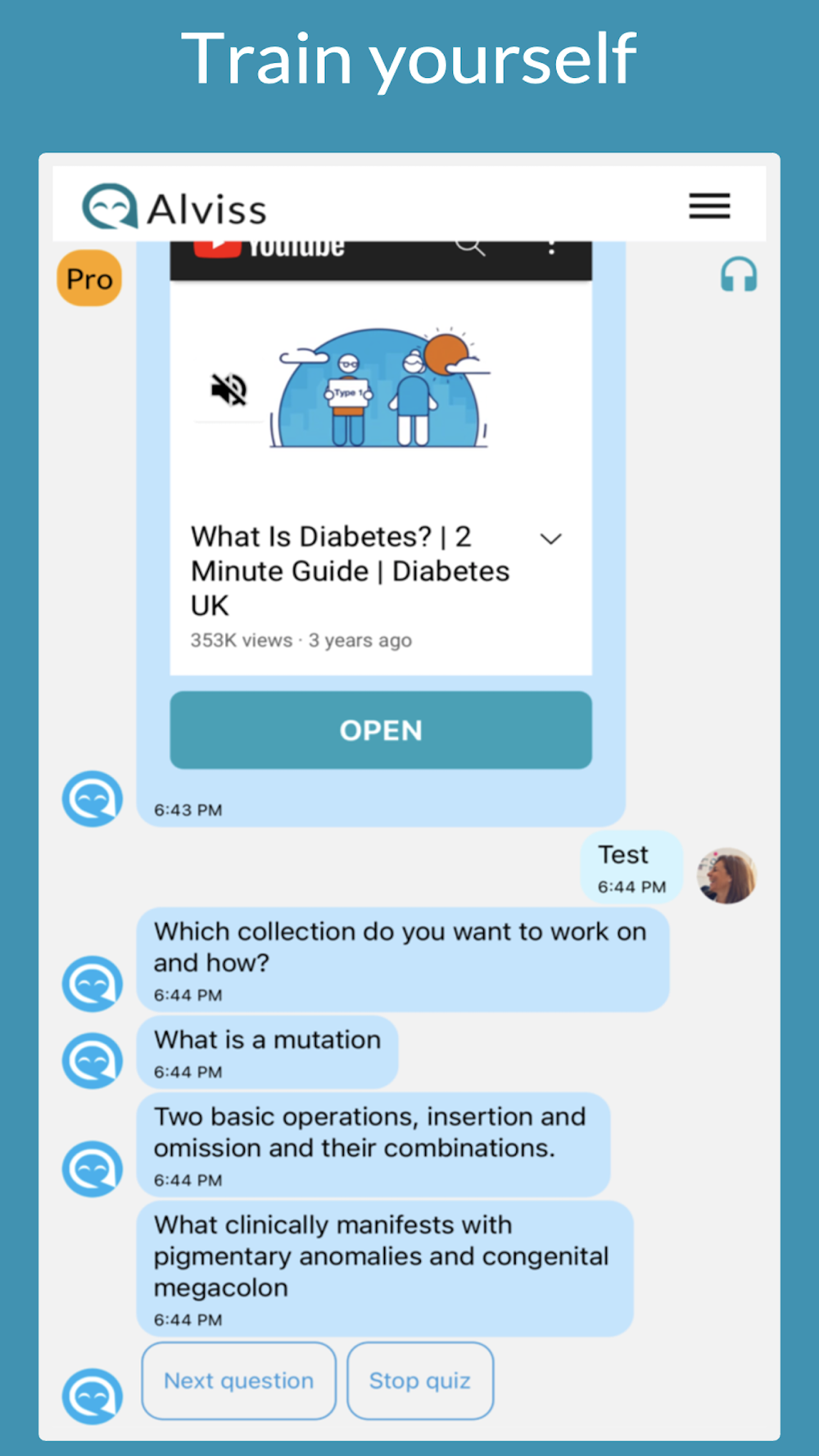 Alviss Assistant is an educational chatbot that answers scientific and biomedical questions. Alviss uses artificial intelligence (AI) and machine learning (ML) to answer questions based on existing published information.