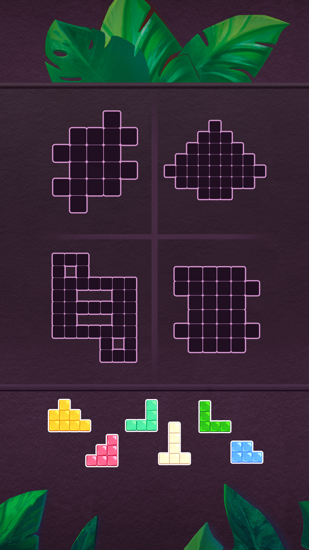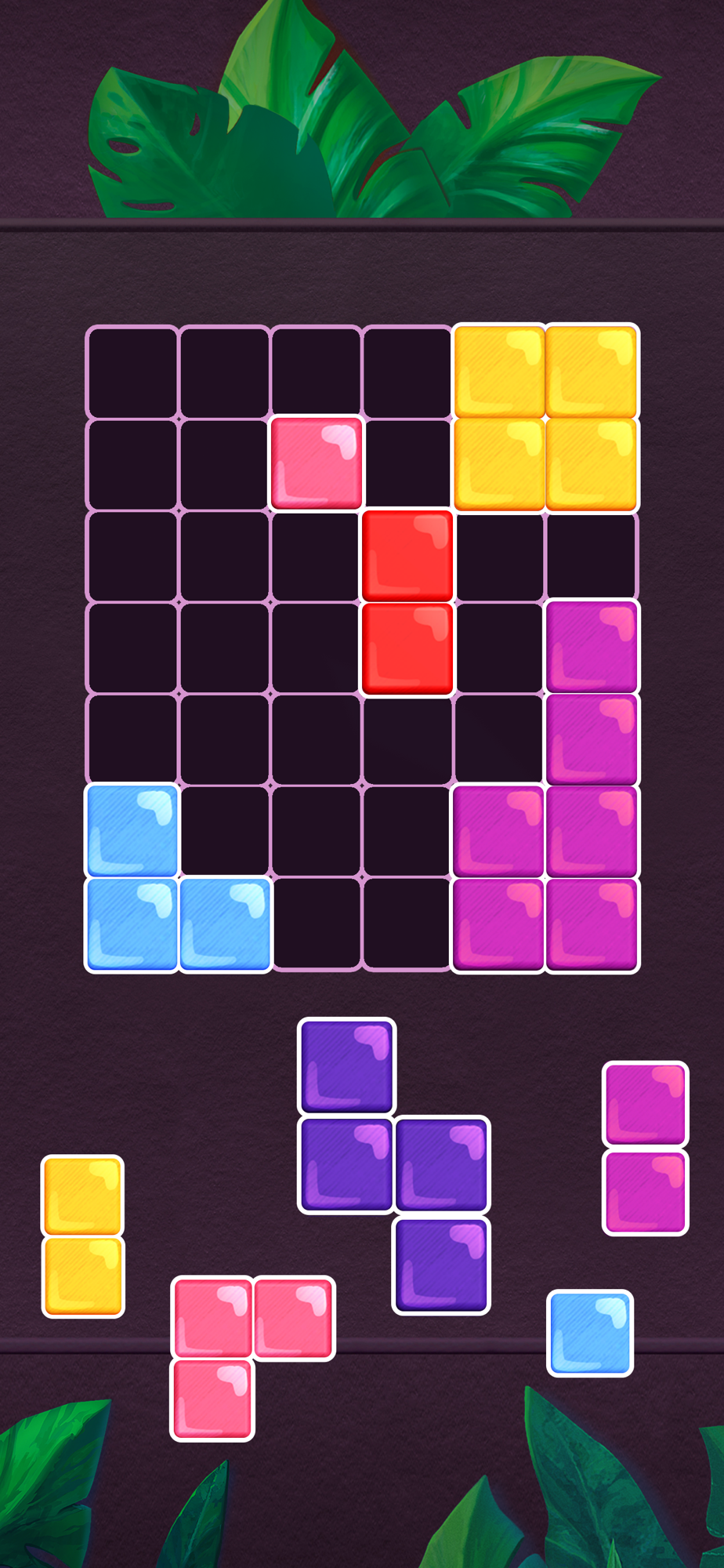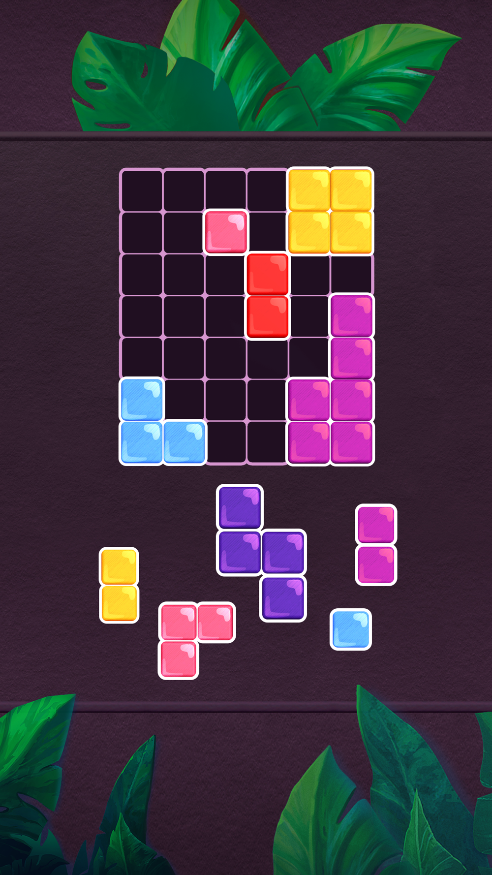 Shapes mode: Drag and drop color blocks on the board to solve the puzzle.