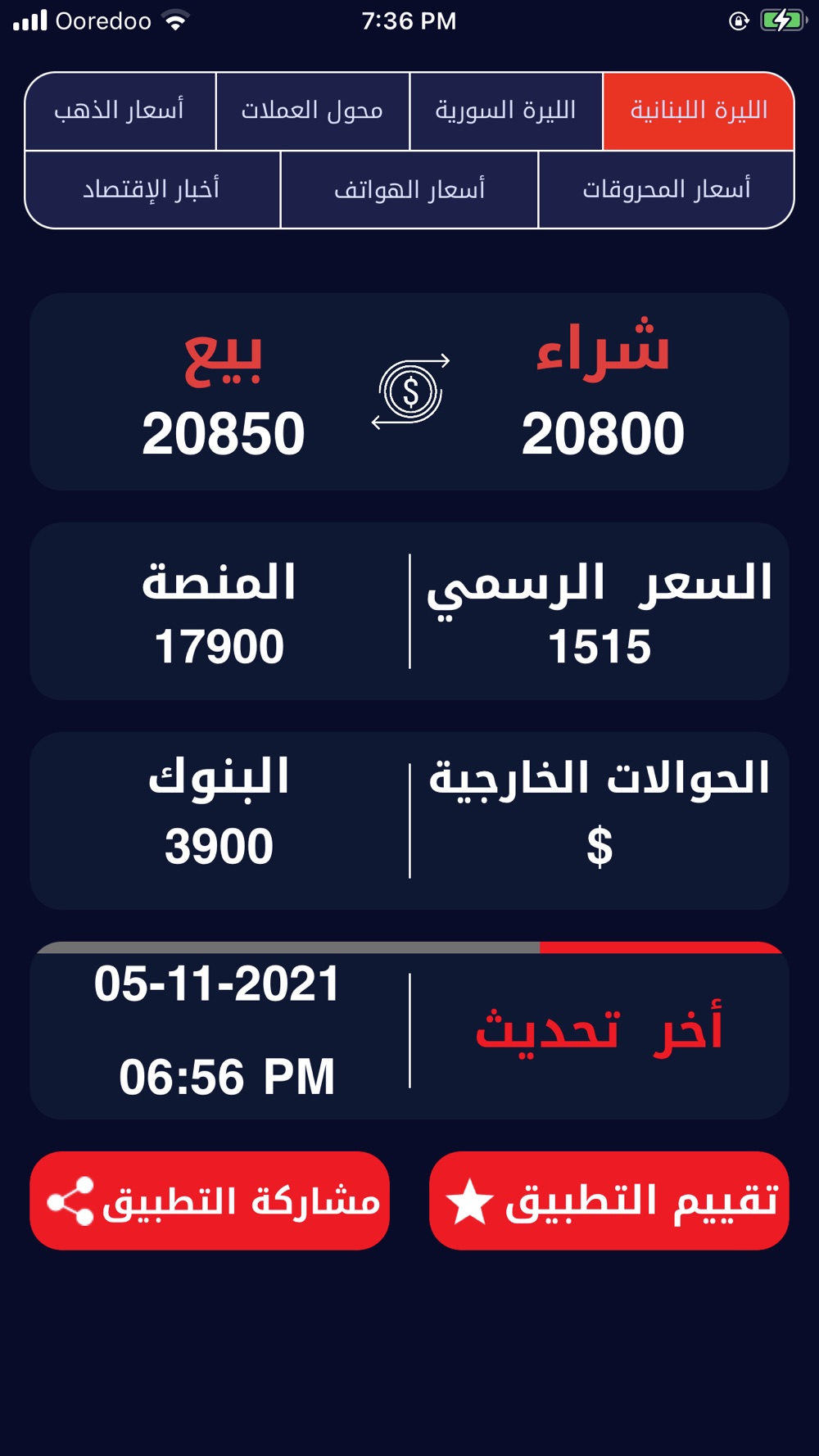 An application specialized in publishing currency exchange rates, oil and gold prices in Lebanon, and the latest economic news