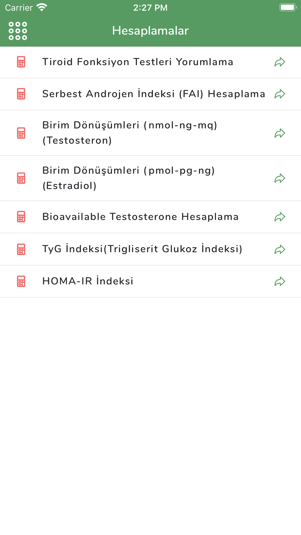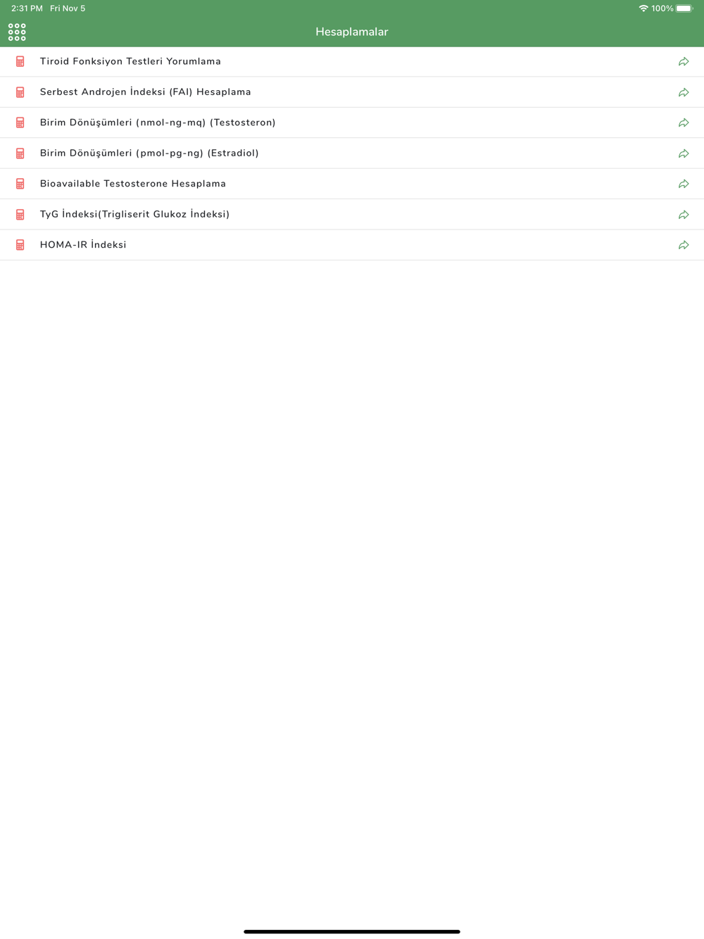 Hesaplamalar: serbest androjen indeksi, tiroid fonksiyon testleri diagramı, laboratuar birimlerinin dönüşümü gibi hesaplamaları uygulama üzerinden rahatlıkla yapıp zaman kazanabileceksiniz.