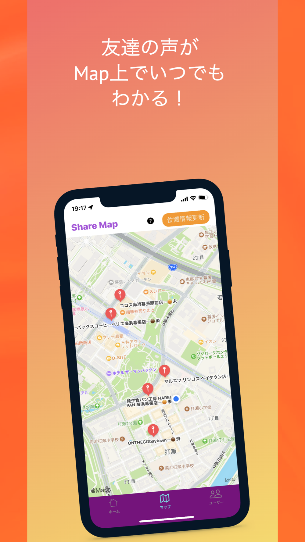 ②マップ上で友達の投稿を見て、実際そこに行ってみよう。