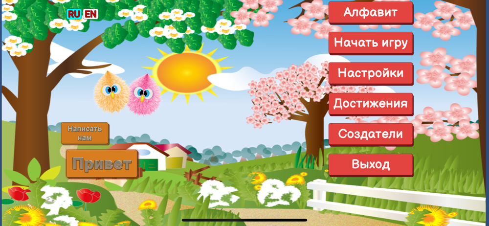 For those who do not know Russian, we have added English translation in the Alphabet and Educational Games sections (buttons and primary messages of the application have been translated).
