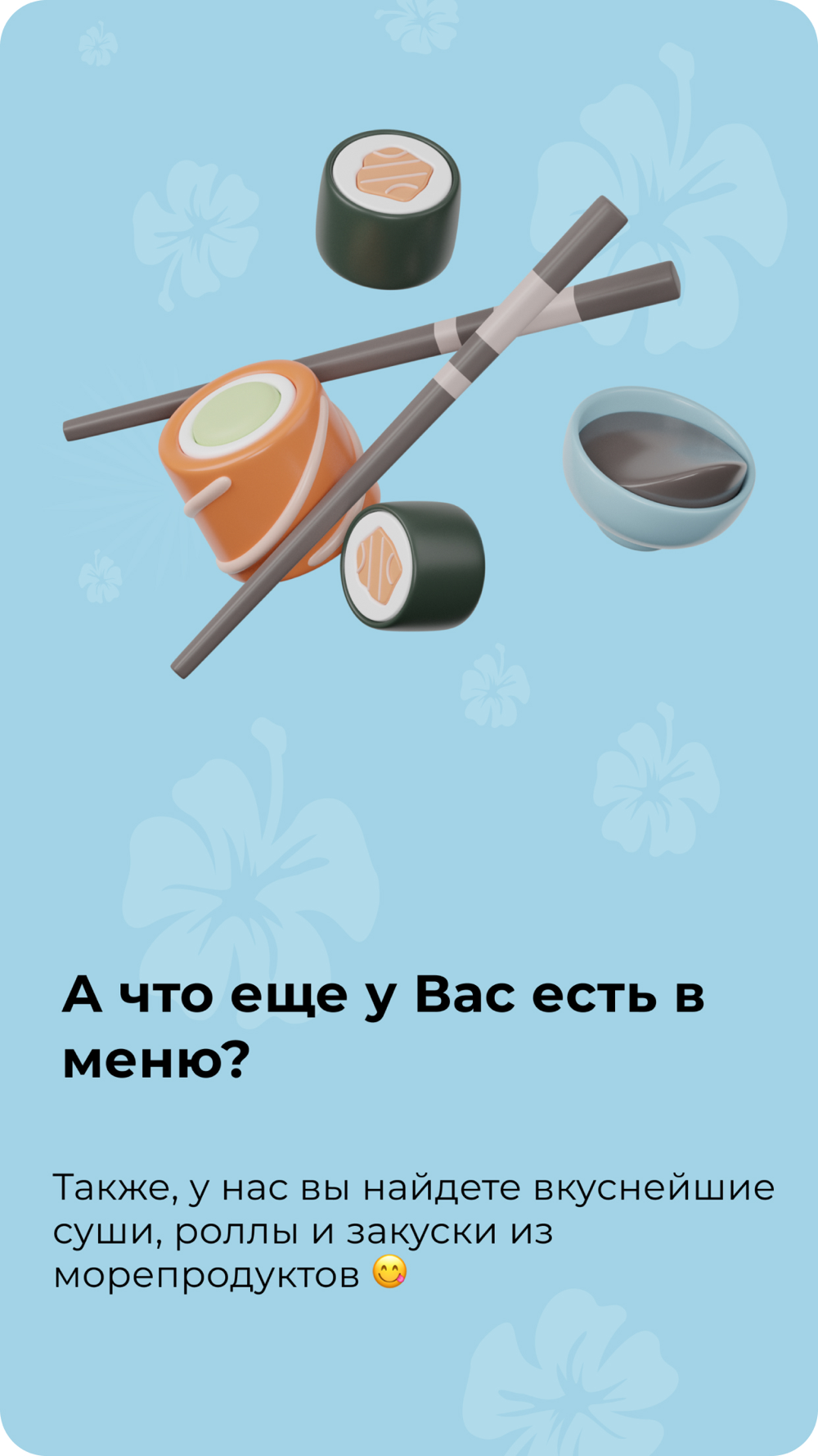 У нас всегда свежие продукты и рыба! Большое количество рыбы в роллах и суши! А также авторские соусы!