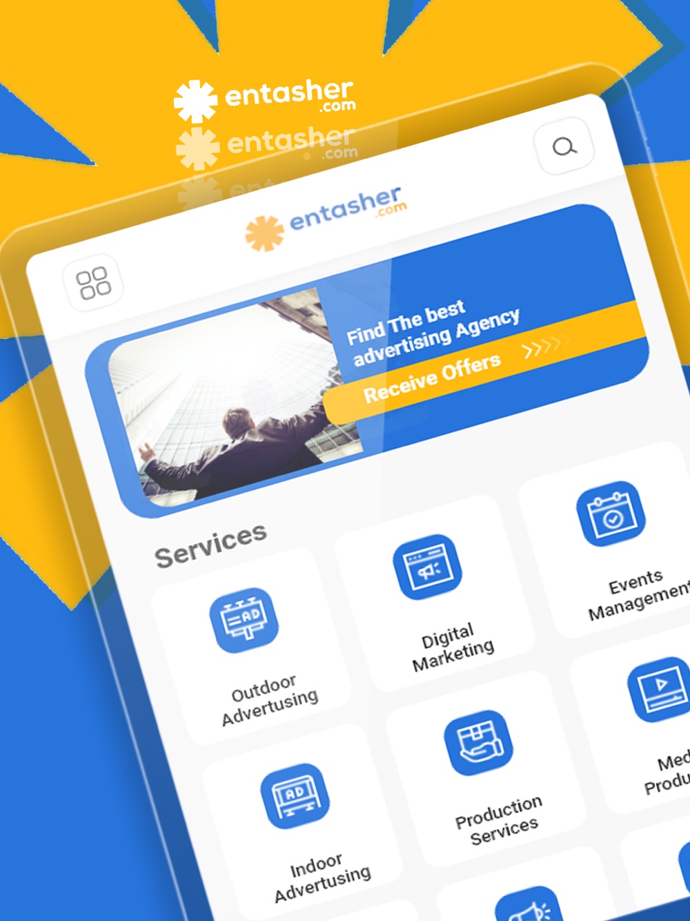 •Entasher.com is the first Cairo-based advertising online portal where you can get all your advertising needs done easily in no time. From booking out of home locations and finding a full detailed online directory for different advertising companies and channels.