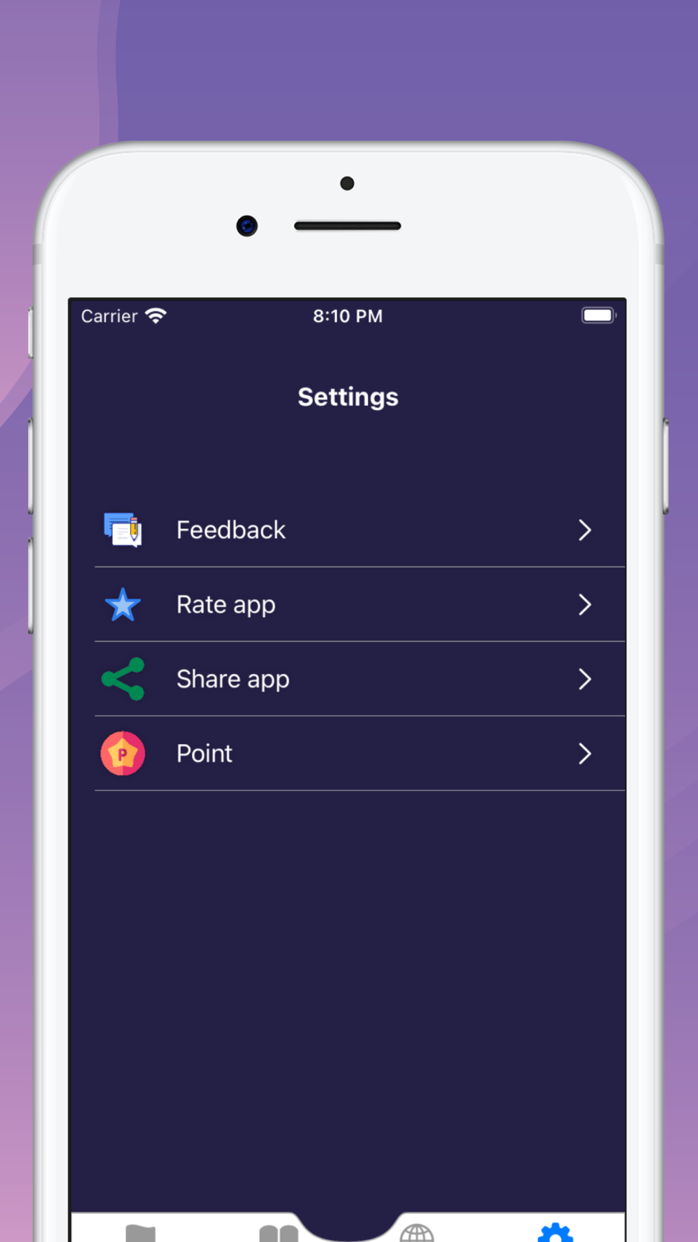 Una aplicación con diversa información sobre todos los países del mundo. Hay varios juegos relacionados con las banderas de los países, códigos telefónicos, capitales, continentes.