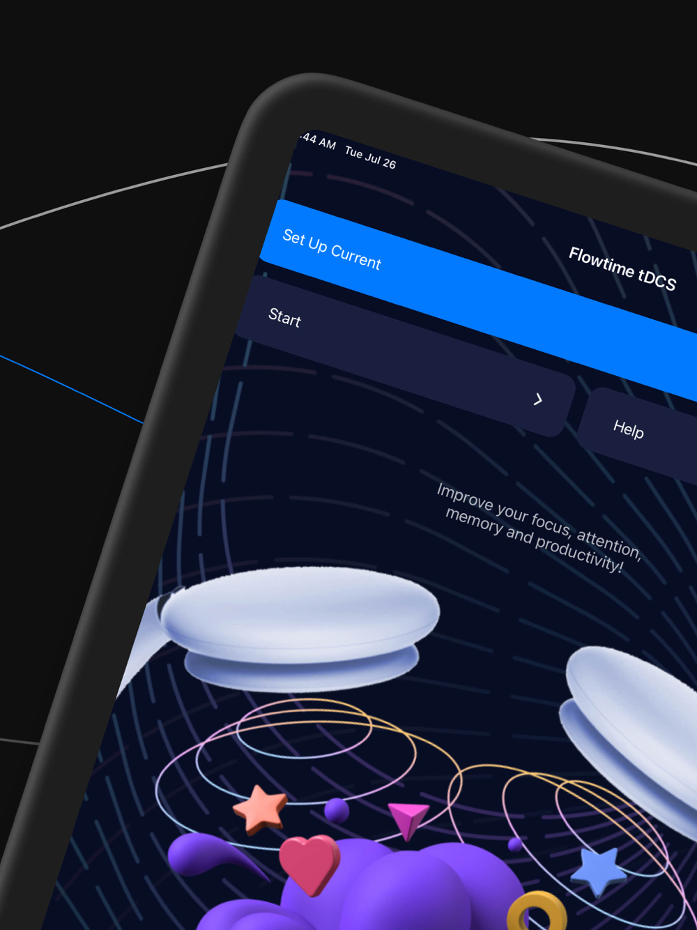 Flowtime tDCS headset, supported by well-studied tDCS science, helps you feel better in 1 minute to have sharper focus, clearer memory, less stress, and greater performance.