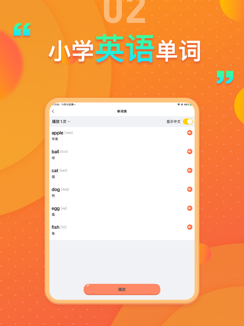 此App针对儿童设计的互动体验,让学生更轻松掌握小学英语学习内容。
