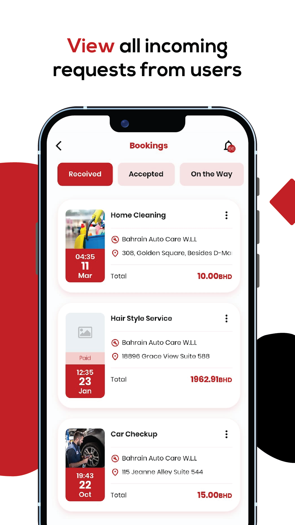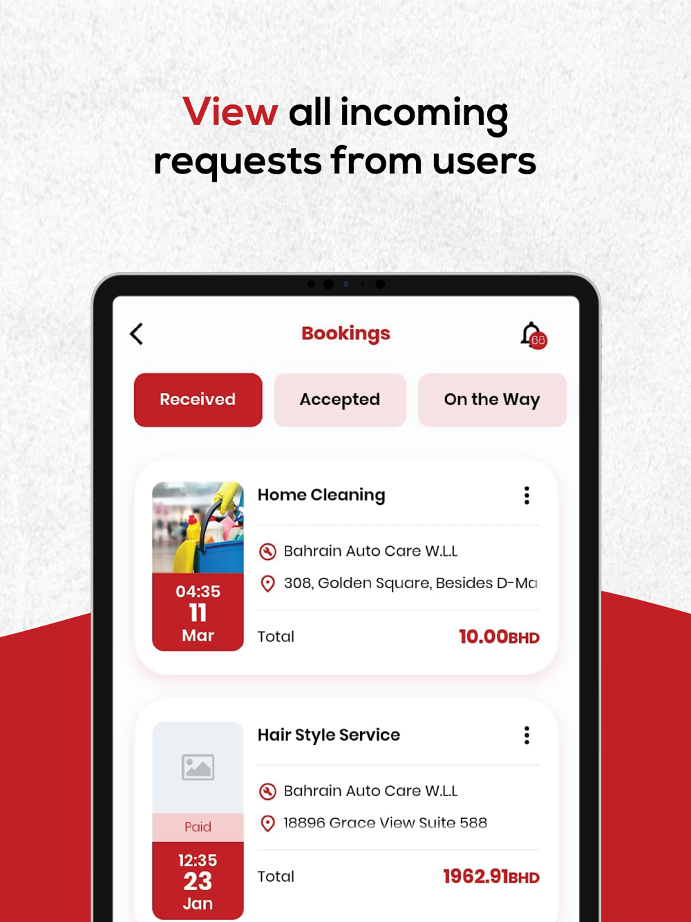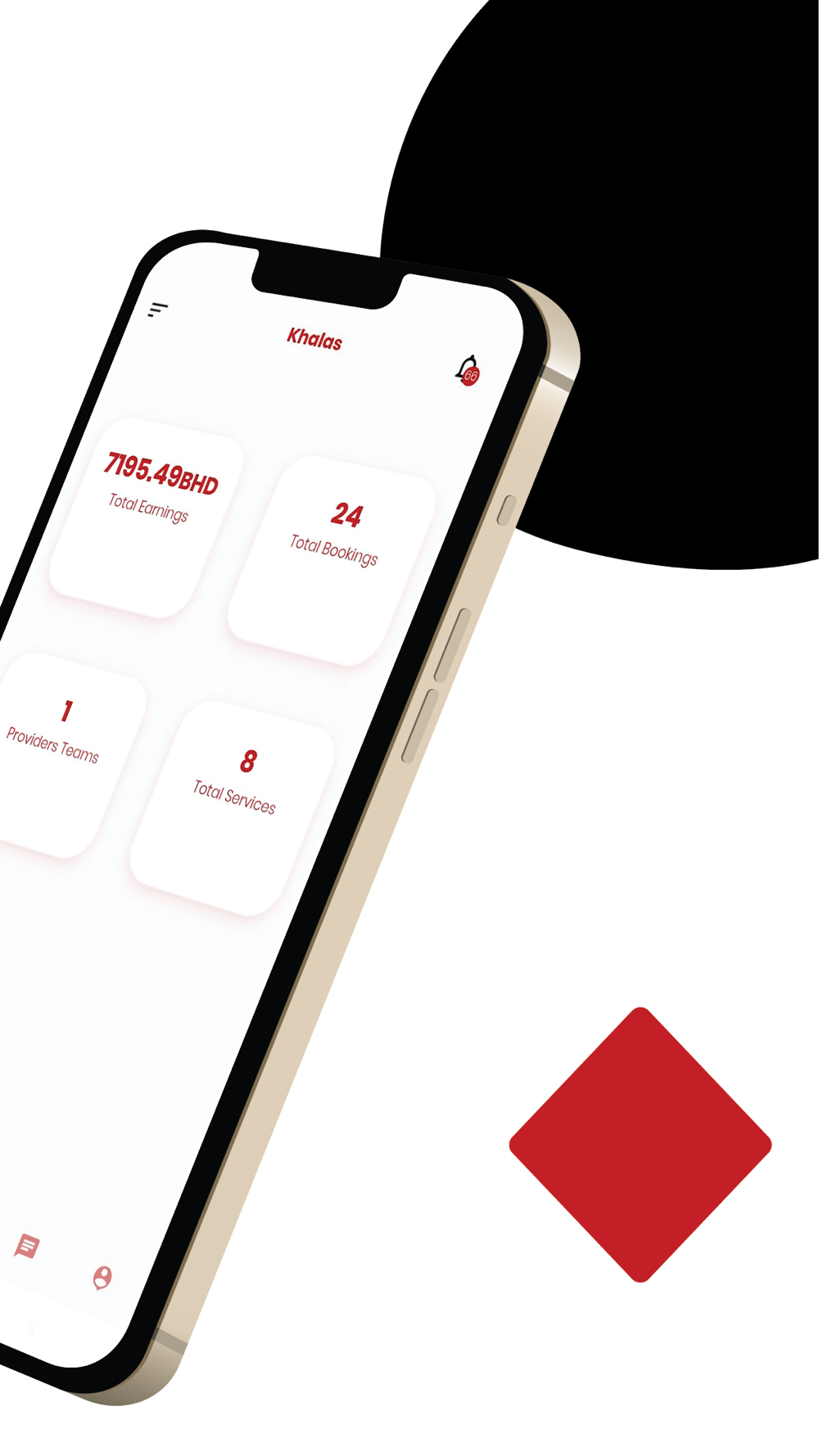 Khalas provider app gives you as a provider the ability to view all the bookings from all the services you provider around Bahrain with a click.