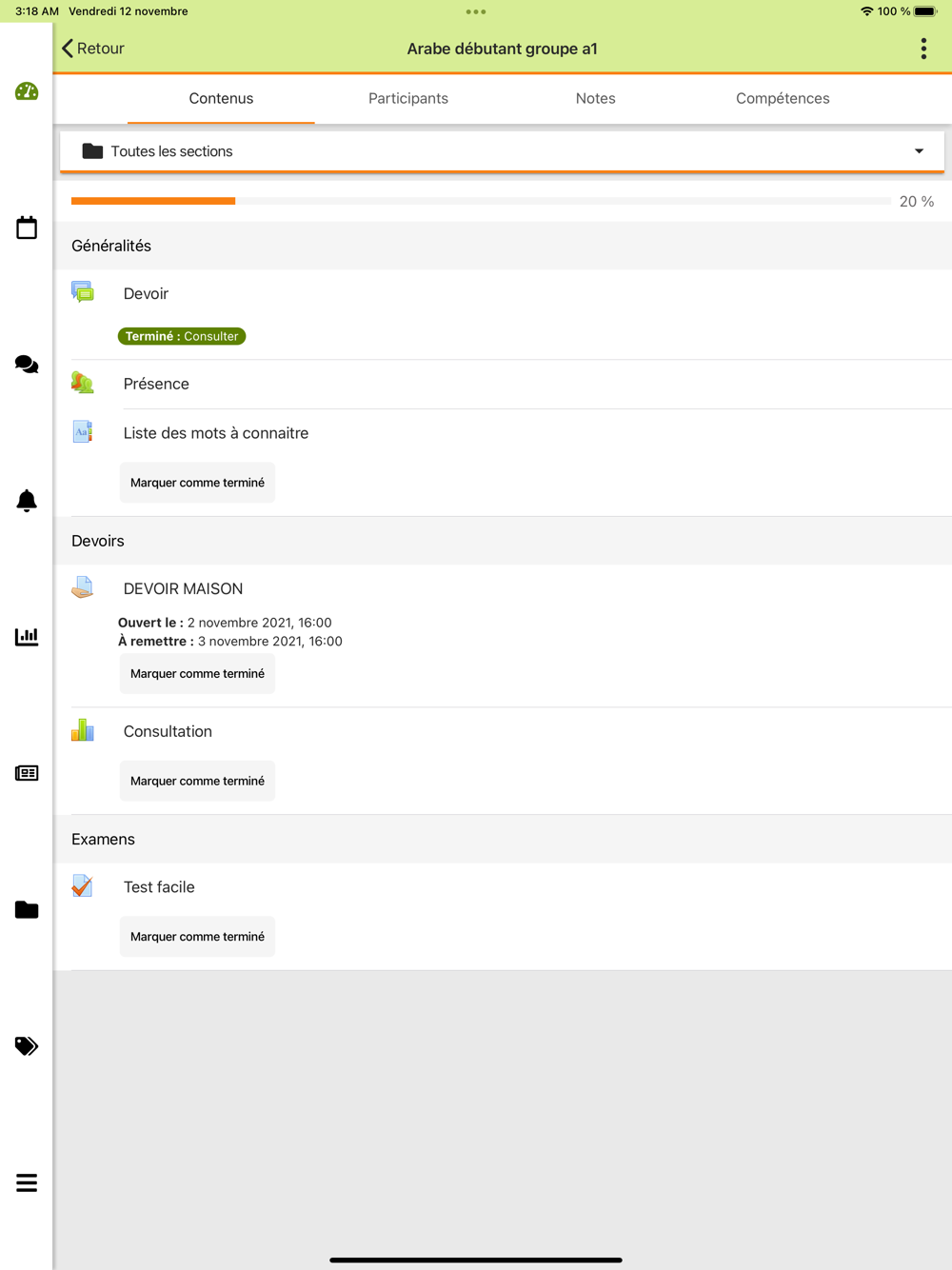 Une fois enregistré, vous pourrez naviguer parmi les cours disponibles en langue Arabe qui seront régulièrement mis à jours. Pour accéder à une session d'apprentissage, vous devrez vous inscrire en soumettant une demande à l'enseignant en charge du cours. Les sessions d'apprentissage se déroule en ligne mais peut aussi pour certaines sessions se dérouler en présentiel à l'école Essalam situé à Creil.