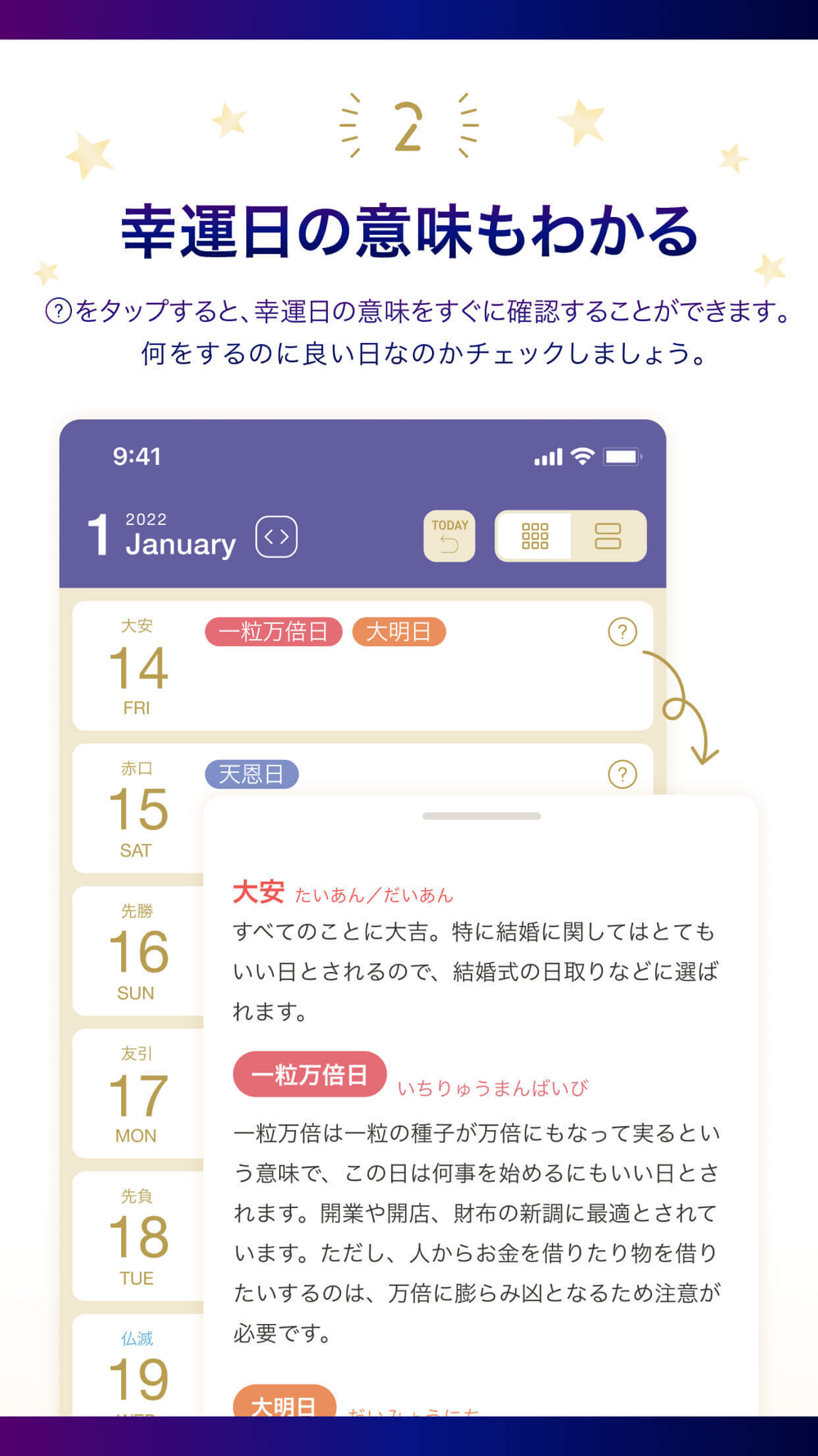 ◇ 幸運日の意味もすぐわかる!