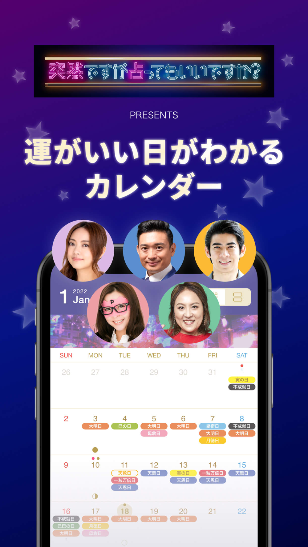 フジテレビ系火曜よる20時~放送中 『突然ですが占ってもいいですか?』発のカレンダーアプリ!