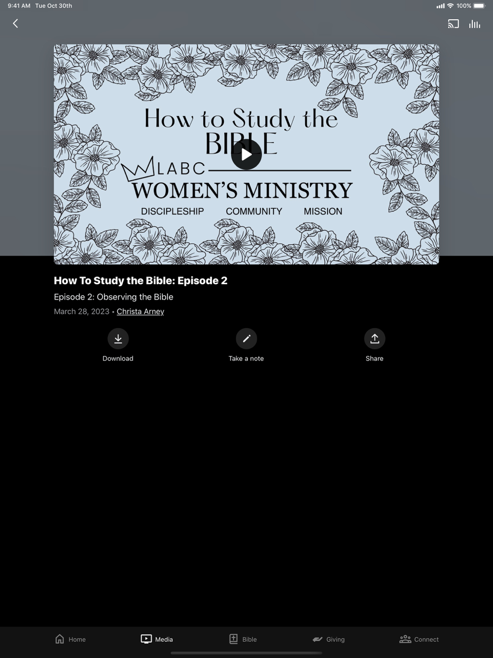 This app will help you stay connected with the day-to-day life of our church. With this app you can: watch or listen to past messages; stay up to date with push notifications; share your favorite messages via Twitter, Facebook, or email; and download messages for offline listening.