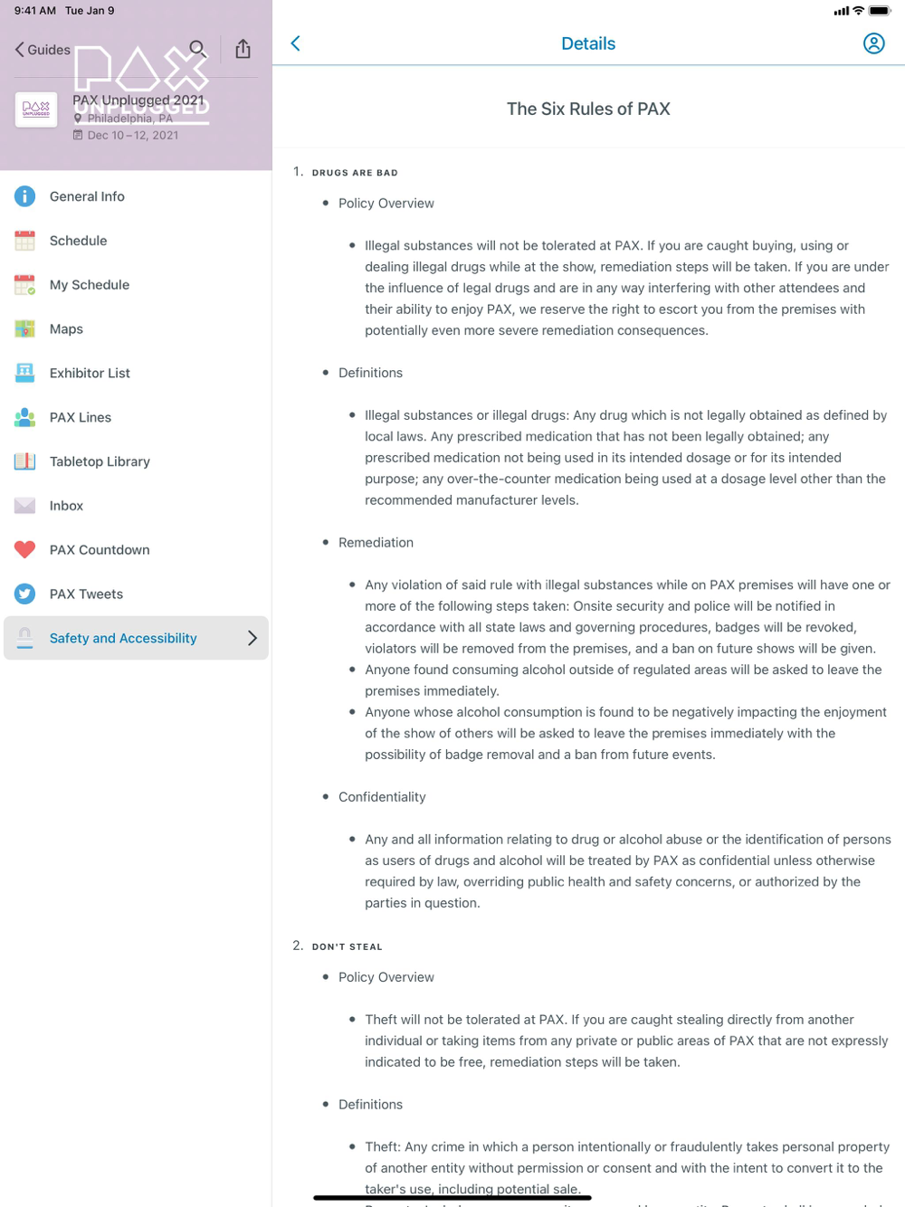 The official app of PAX giving you access to the full schedule, exhibitor lists, maps, personal schedule, access into PAX XP, and much more for each PAX event around the world.