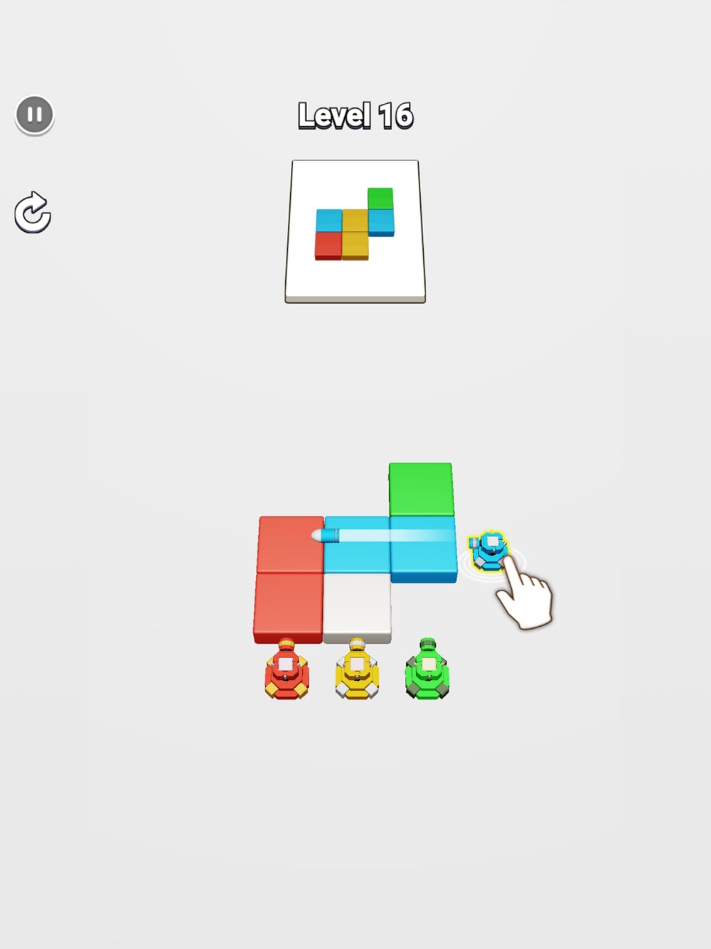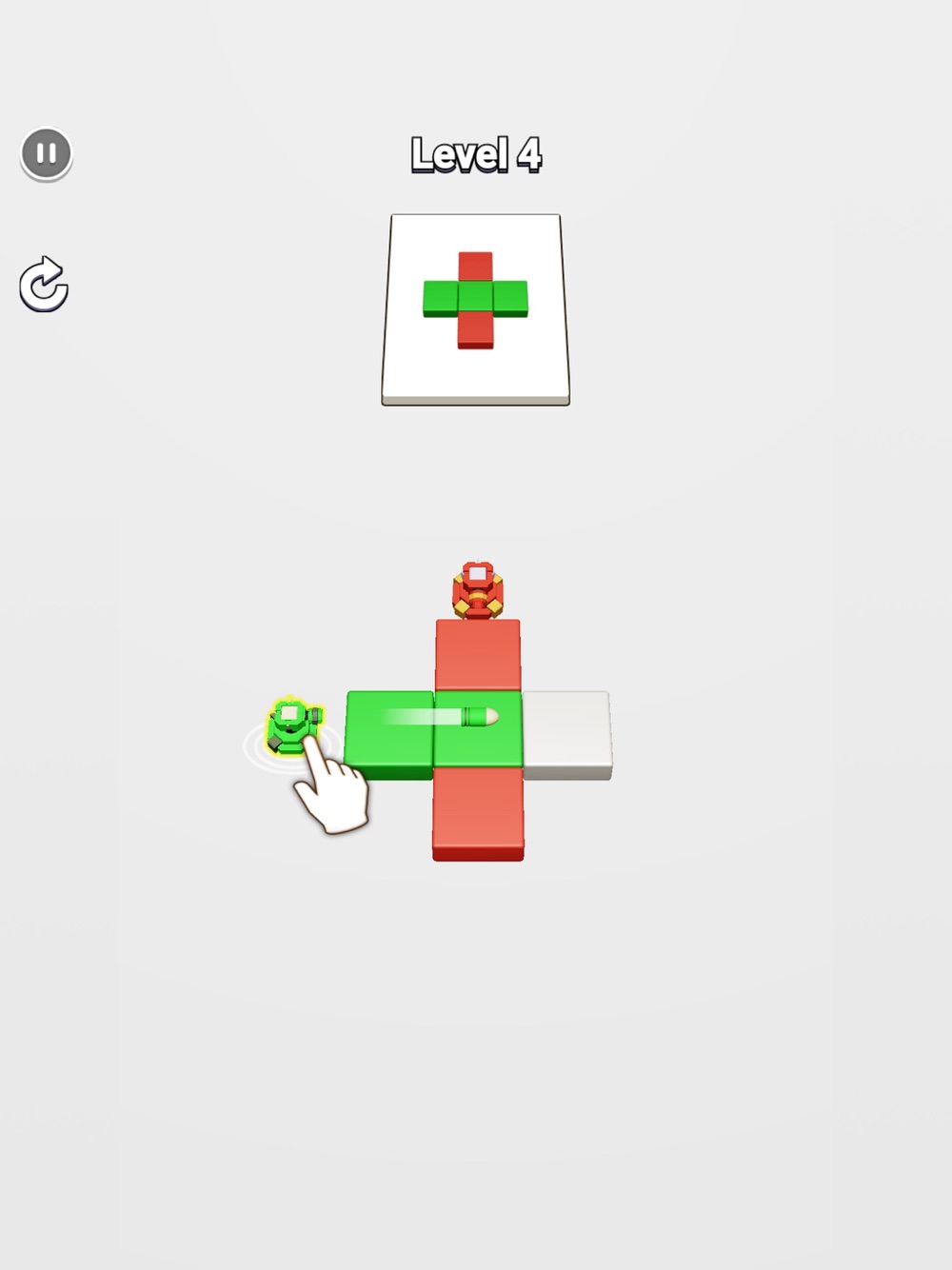 观察目标图形,依次点击炮台使方块被染色达成目标图案