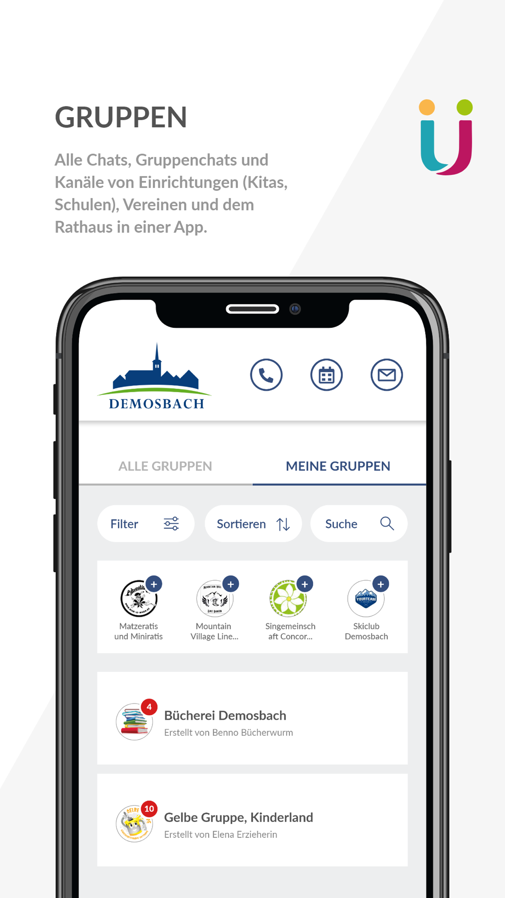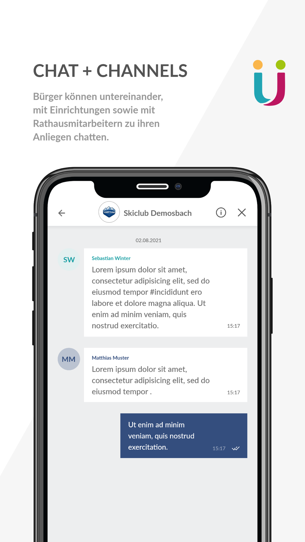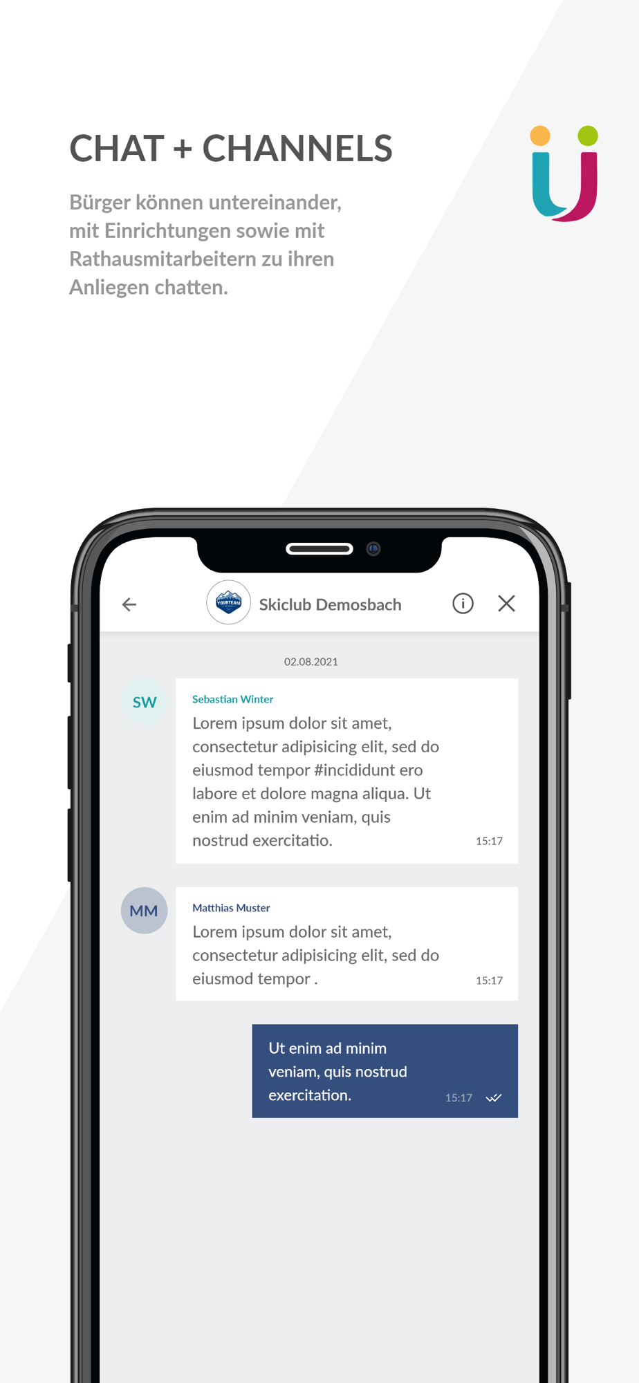 Sie können untereinander, mit Einrichtungen und mit Rathausmitarbeitern zu Ihren Anliegen chatten. Alle Chats und Kanäle des Gemeindeleben gebündelt in einer App.