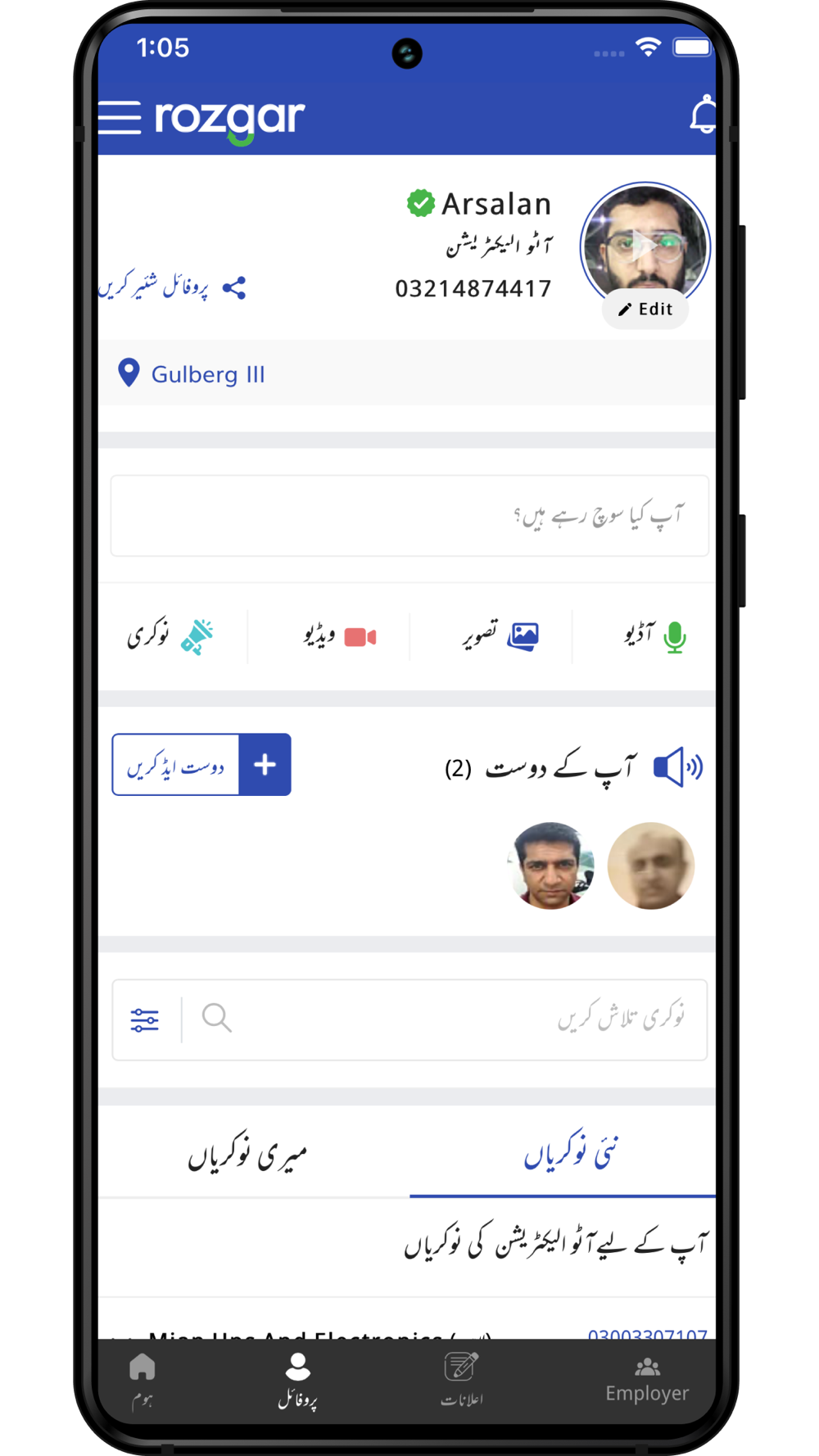 Register honay ke liye Rozgar ki application download karen aur chand bunyadi maloomat faraham karen. ٓApni profile banayen aur Rozgar application ko Facebook ki tarha istemal kartay huay apna mustaqbil mazboot banayen. Tou intizar kis bat ka, abhi Rozgar par ayen aur behtar naukri, behtar amdni payen!
