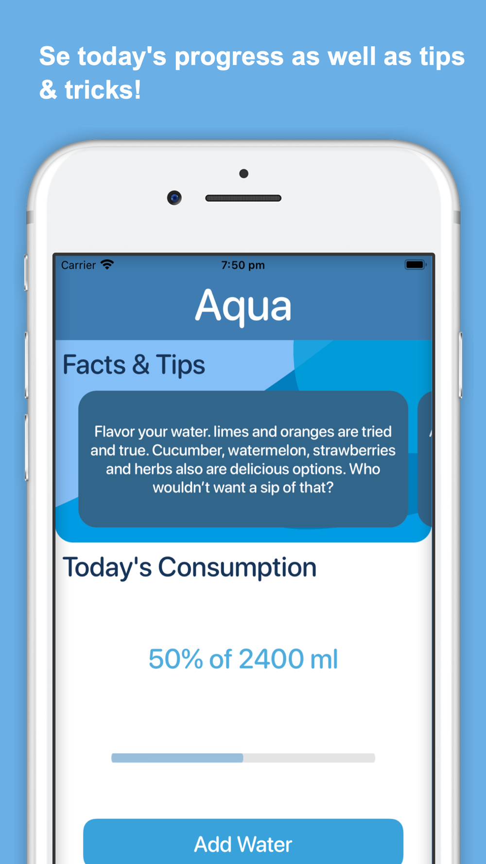 Aqua Reminder is simply an app to support you in staying hydrated! Studies show that more than half of U.S adults don't drink enough water.