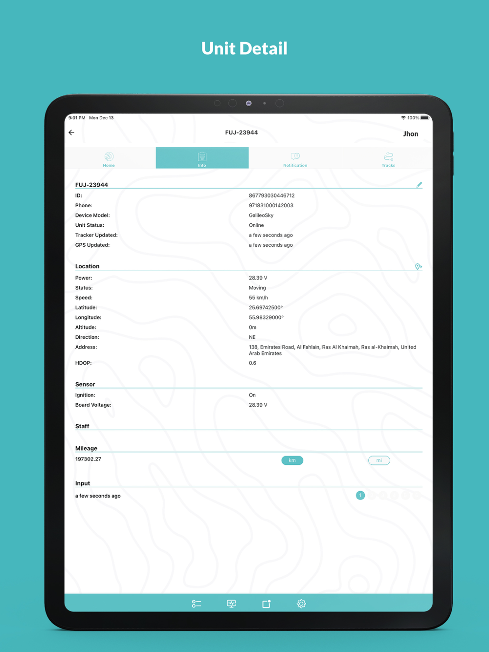 The tatabo3 app comes with an easy-to-use mobile interface that allows you to monitor every aspect of fleet operations. From the activity status to live notifications, everything is available on your mobile app.
