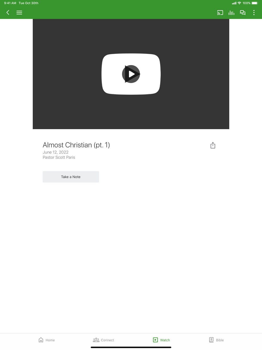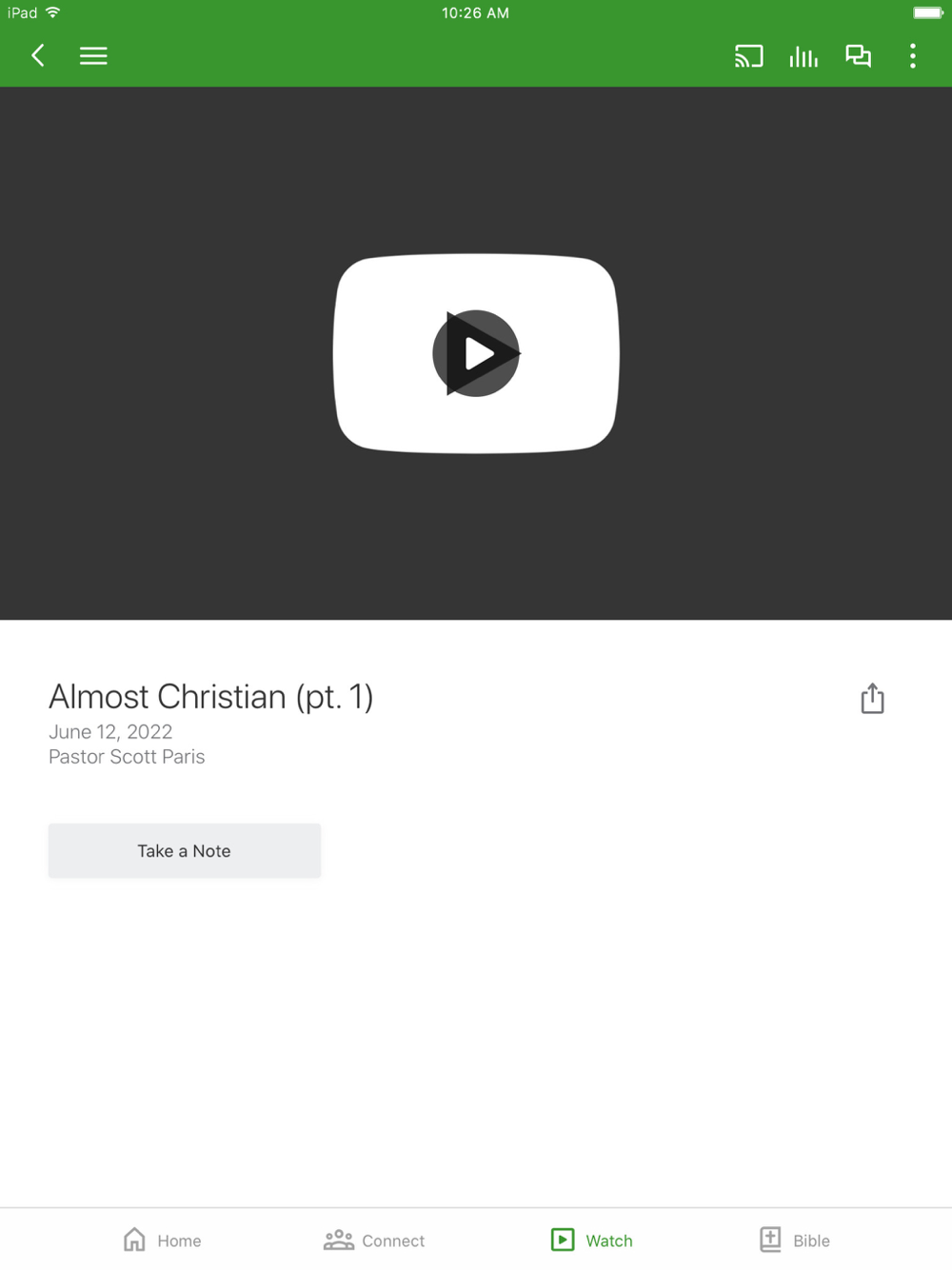 This app will help you stay connected with the day-to-day life of our church. With this app you can: watch or listen to past messages; stay up to date with push notifications; share your favorite messages via Facebook; and download messages for offline listening.