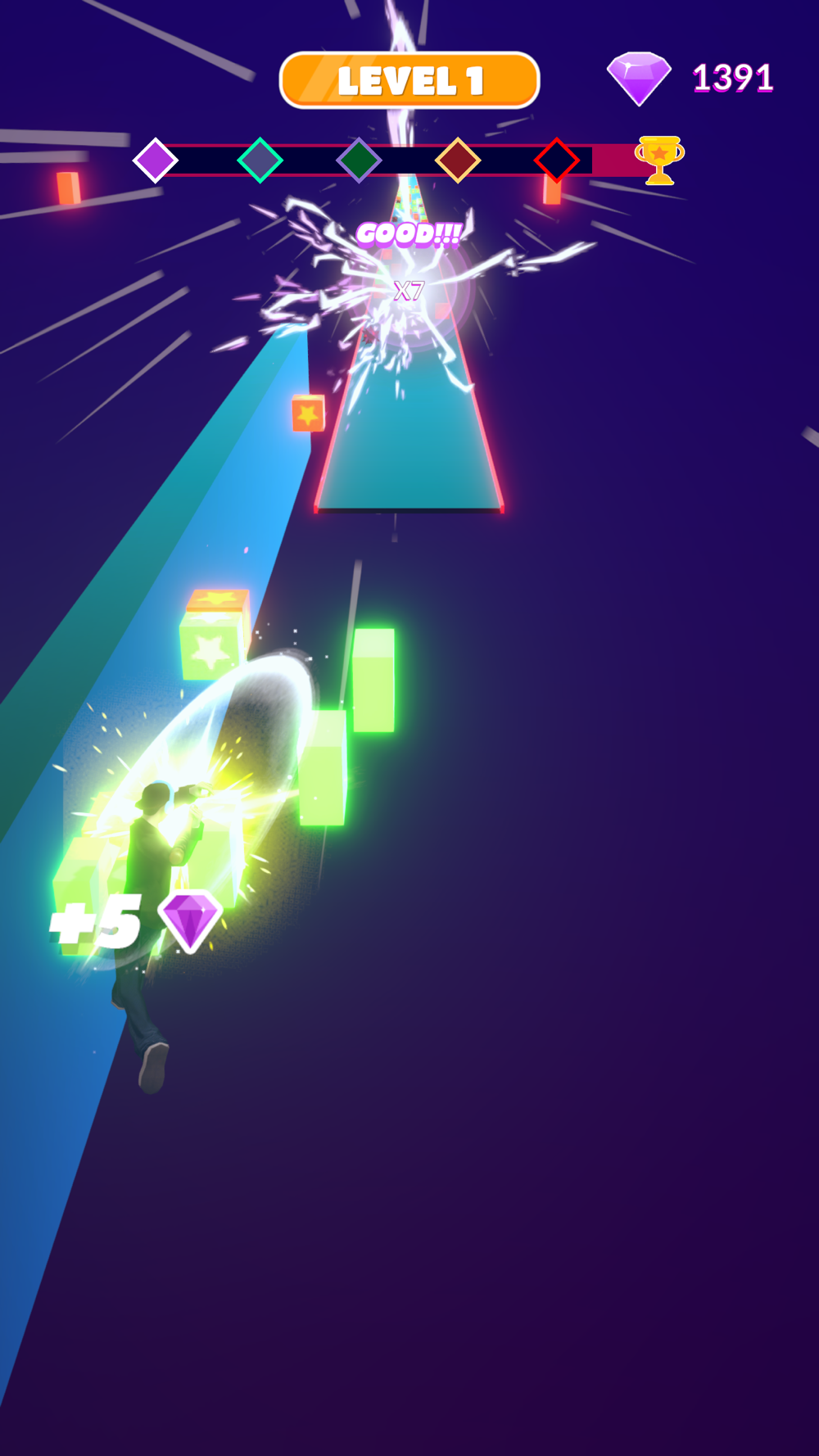 Dj Runner is a game that using one thumb to control the character. We smash everything by avoiding mines, increase our ability to smash by getting power-ups.