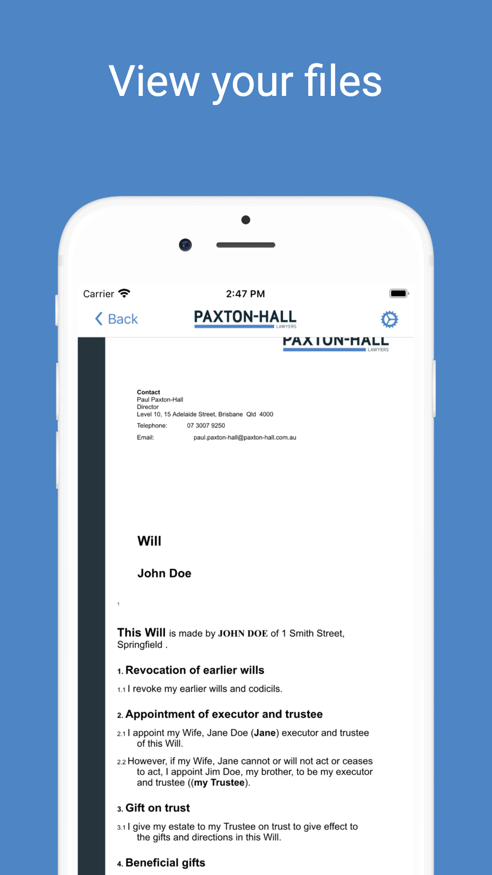 Paxton-Hall Lawyers is committed to engaging with its clients in the most efficient and effective way possible. The interests of our clients is paramount and we firmly believe in embracing technology to make our client's engagement with us as easy as possible.