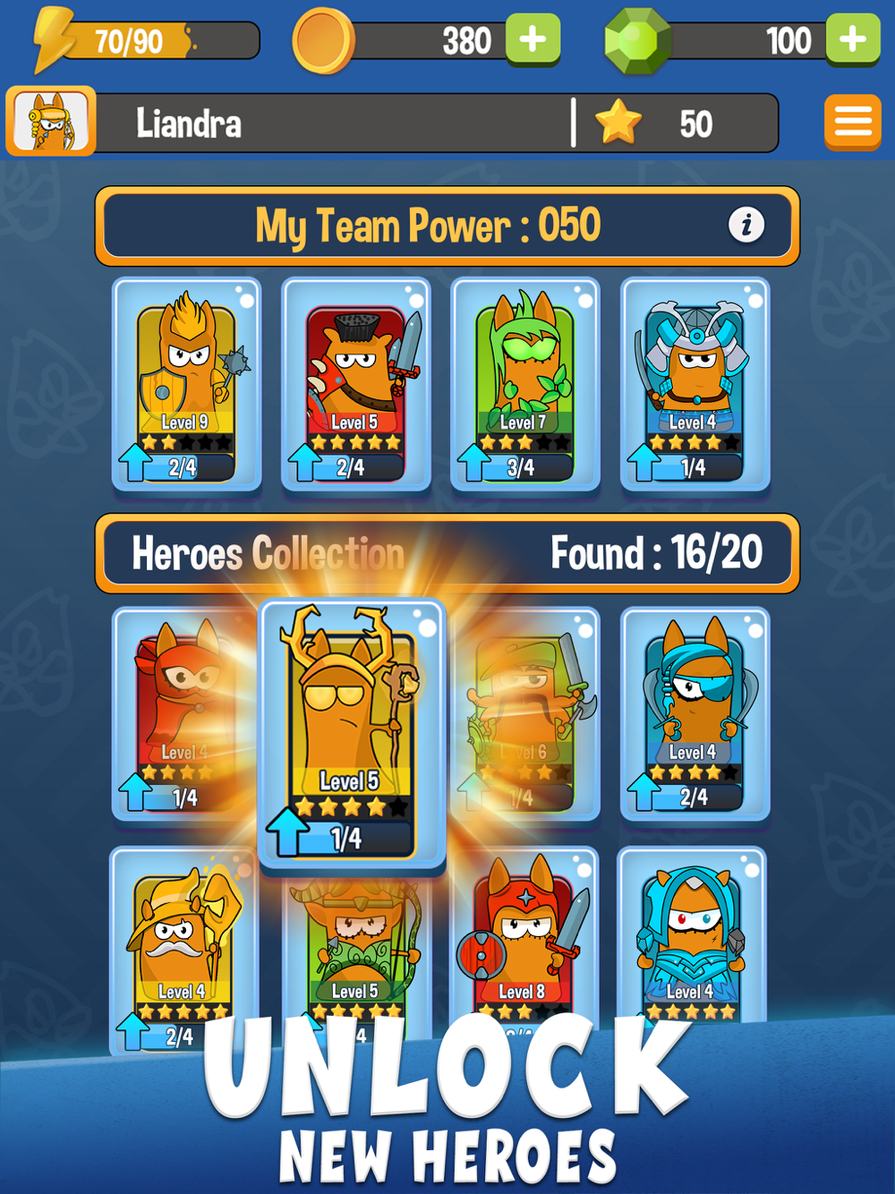 - Unlock, collect and upgrade 20 unique heroes and their unique powers