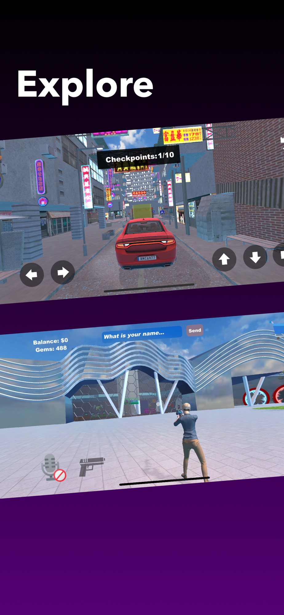 Drive your car through narrow streets in a sci-fi city. Don’t miss the checkpoints because