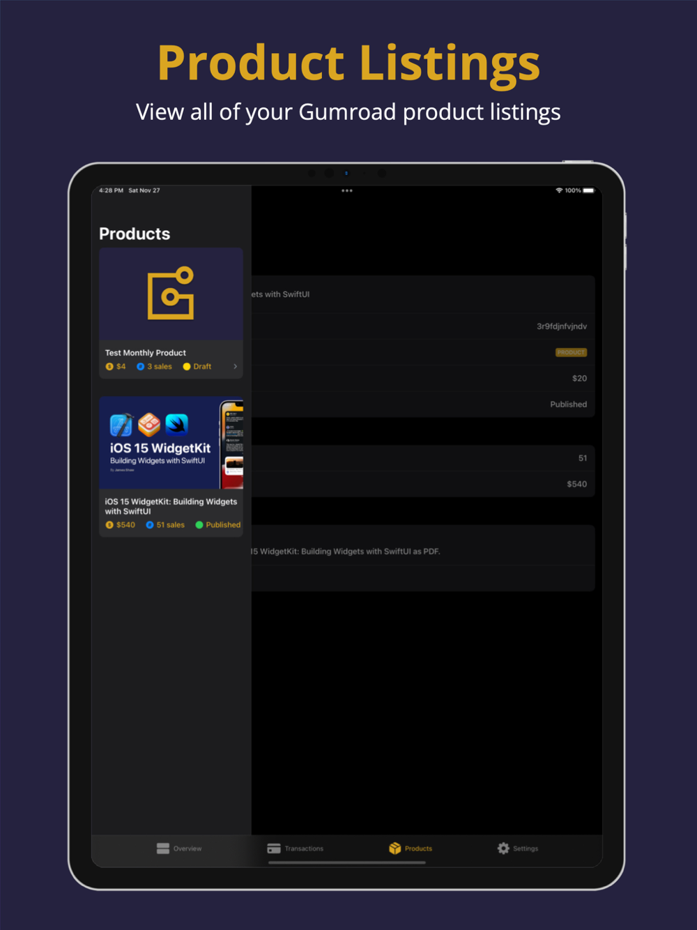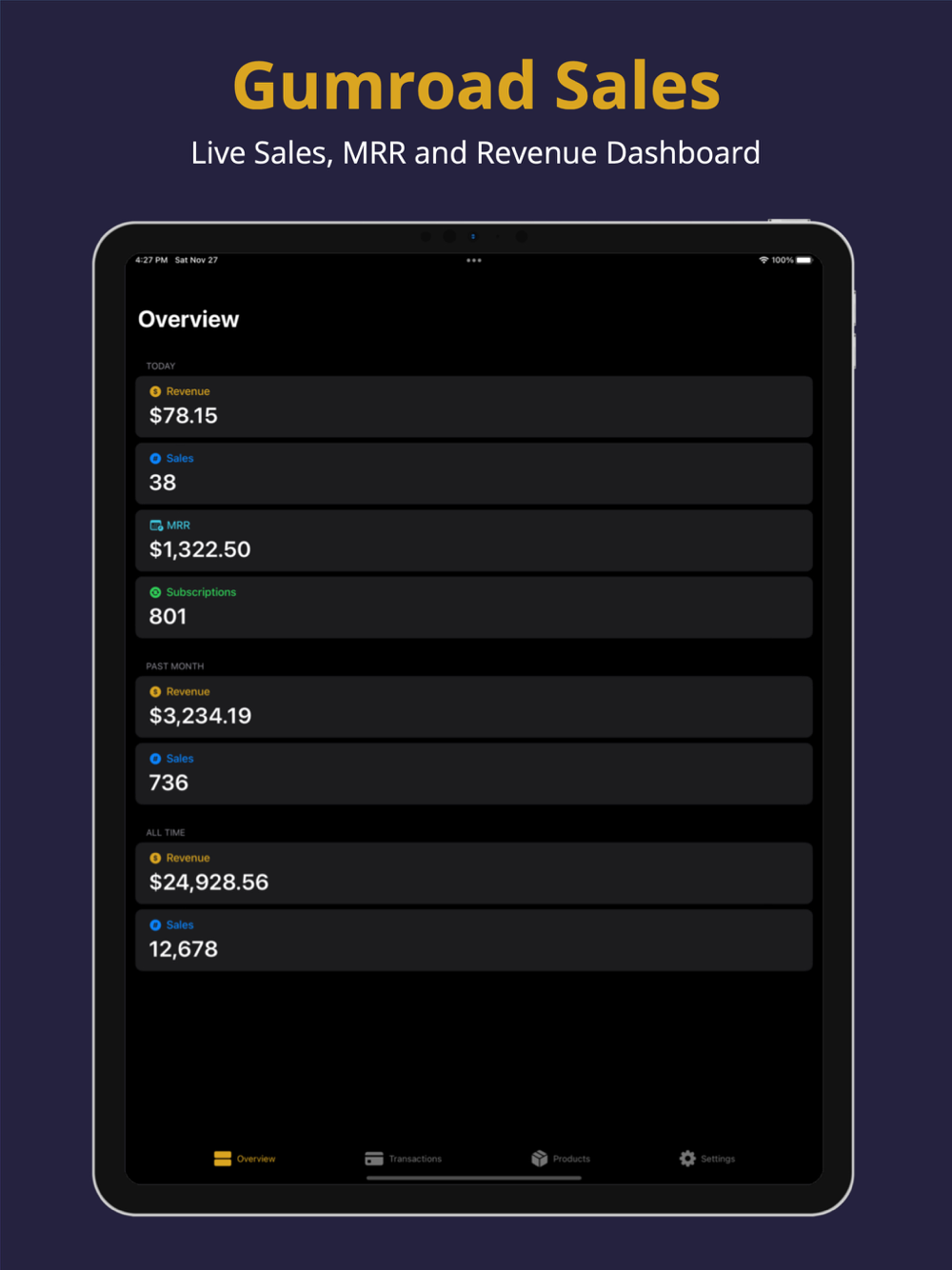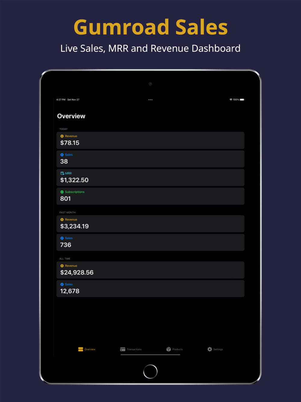 Milestones is the perfect companion for all Gumroad sellers and creators to view their real-time sales, transaction and product data! With full support for iPhone, iPad and Mac. And with Push Notifications enabled, you’ll never miss the buzz of being notified of a new sale!