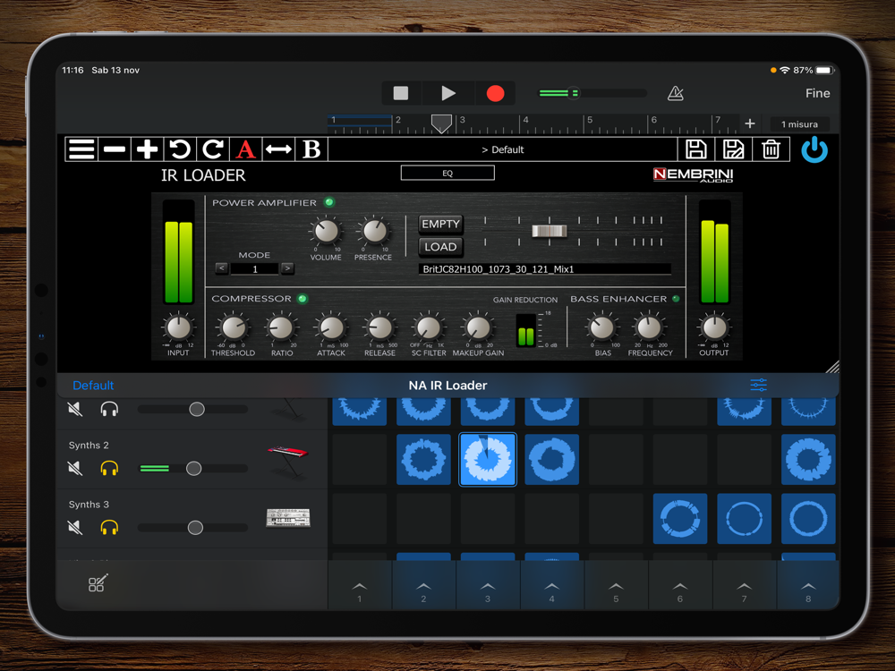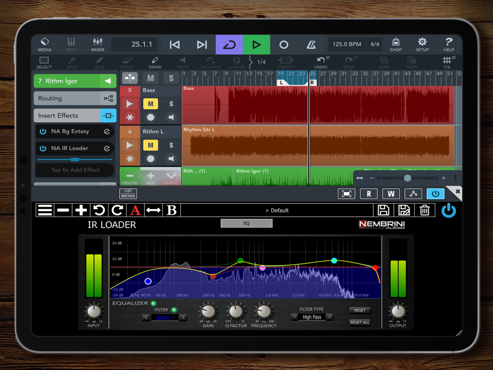 The onboard custom-designed desk compressor with side chain high pass filter, 6 band parametric equalizer with graphic implementation and spectrum analyzer, the bass enhancer make the Nembrini Audio IR Loader the perfect tool to manage and manipulate your guitar and bass cabinet IRs.