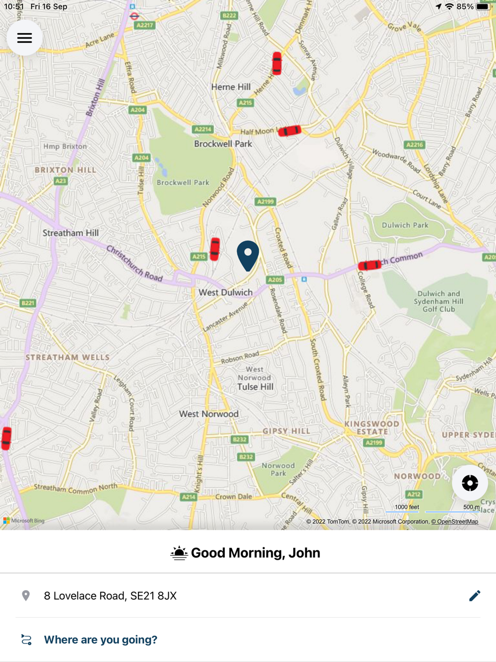 The app is intended for the purpose of arranging travel in the United Kingdom. Therefore, all addresses are restricted to within the UK.