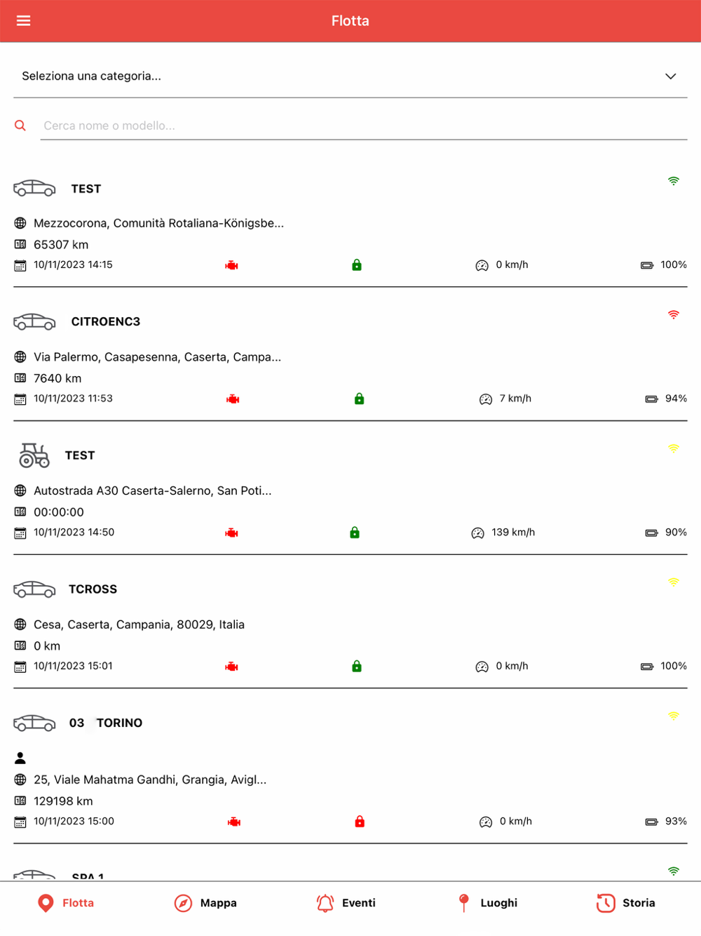 • Dettagli Completi di Ogni Mezzo: Non perdere mai di vista ciò che conta. Ogni veicolo è tracciato individualmente, mostrando dati come il chilometraggio attuale, il nome dell'autista e i kilometri percorsi nella giornata. Inoltre, puoi esaminare le soste e le fermate, le ore di viaggio o lavoro e persino visualizzare lo storico dei percorsi.
