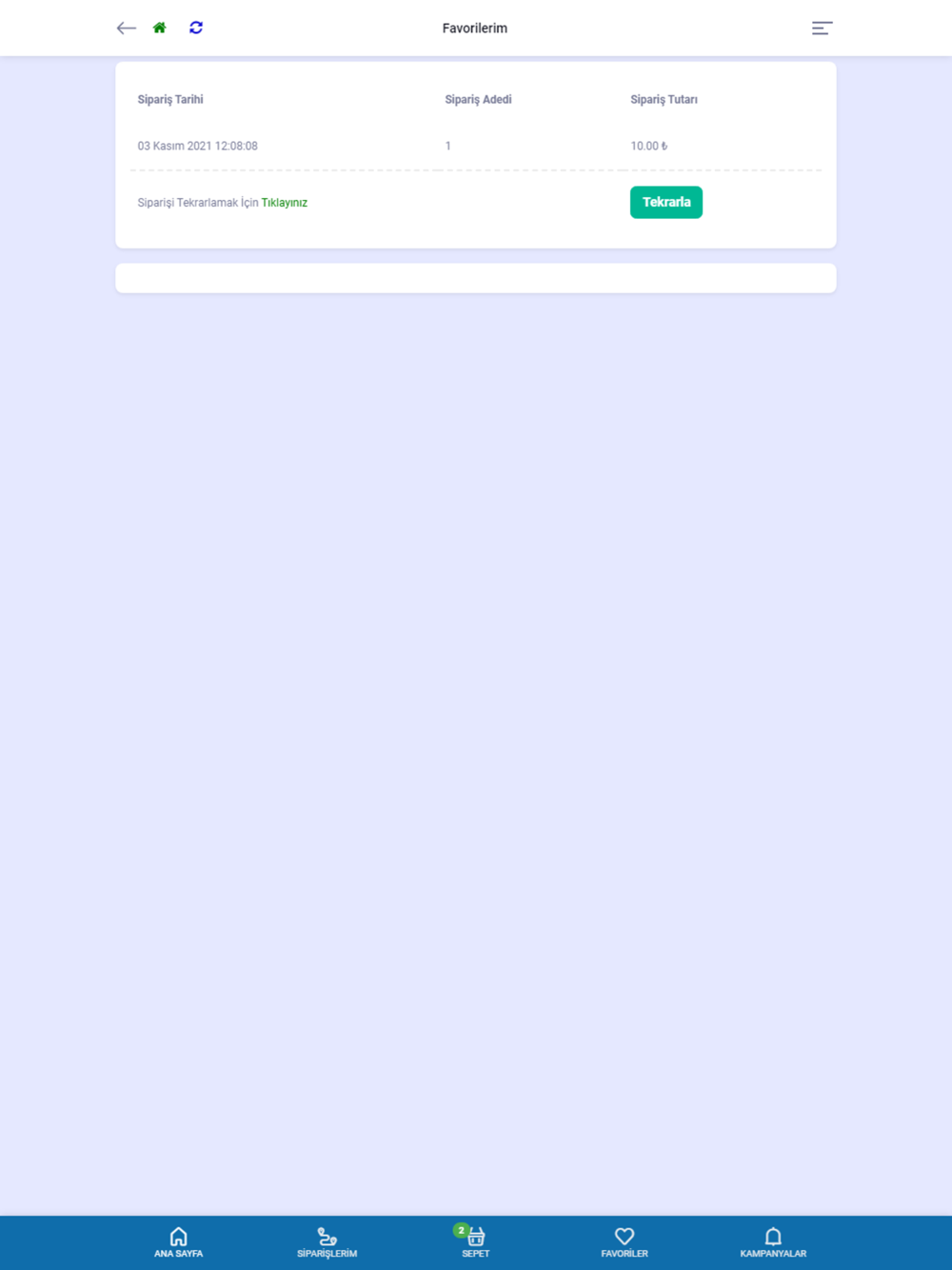 Geçmiş siparişlerinizi görüntüleyip tekrarlayabilme