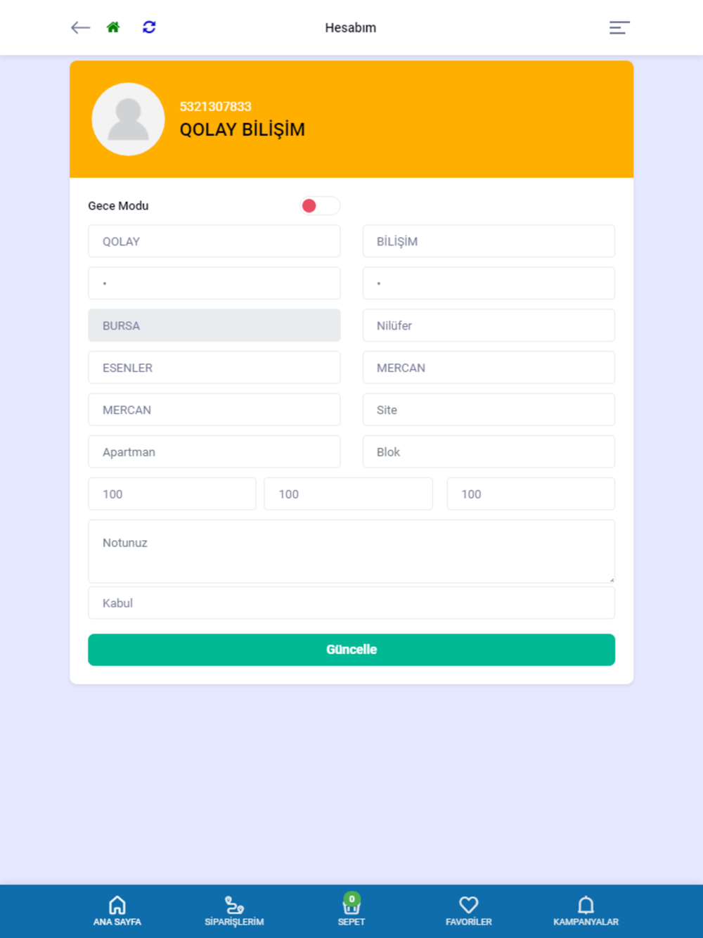 Online olarak sipariş verebilmenize, Sipariş detayı ve Tekrarlana bilmesi, Kişisel verilerinizi yönetebilmeniz, Farklı ödeme kanalları ile ödeme işlemlerinizi yapabilmenizi sağlamaktadır.