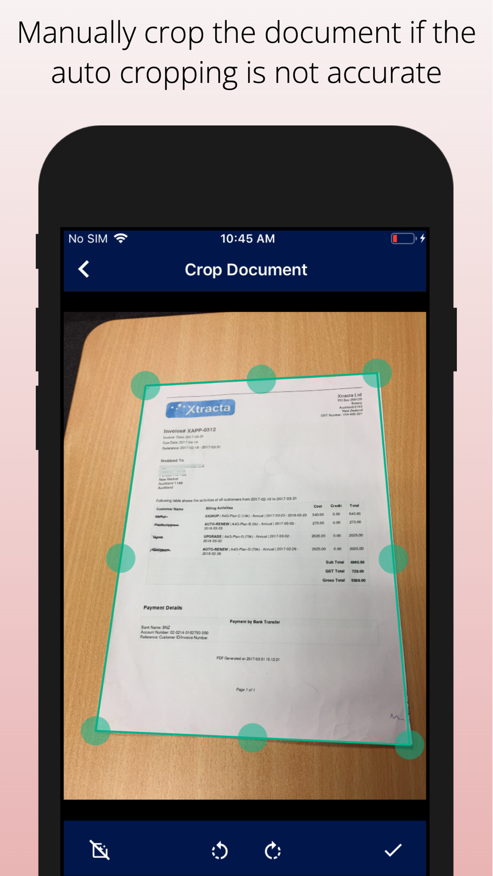 - take a photo of multiple photos of a long expense receipt or invoice and stitch them together