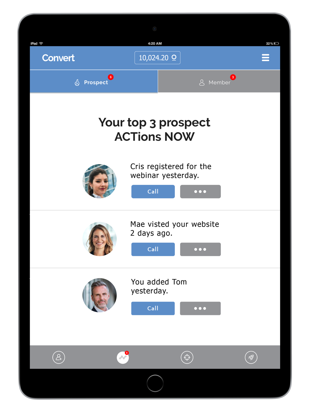 We also have member actions prompting you to follow up with team members, customers, and to share specials with others.