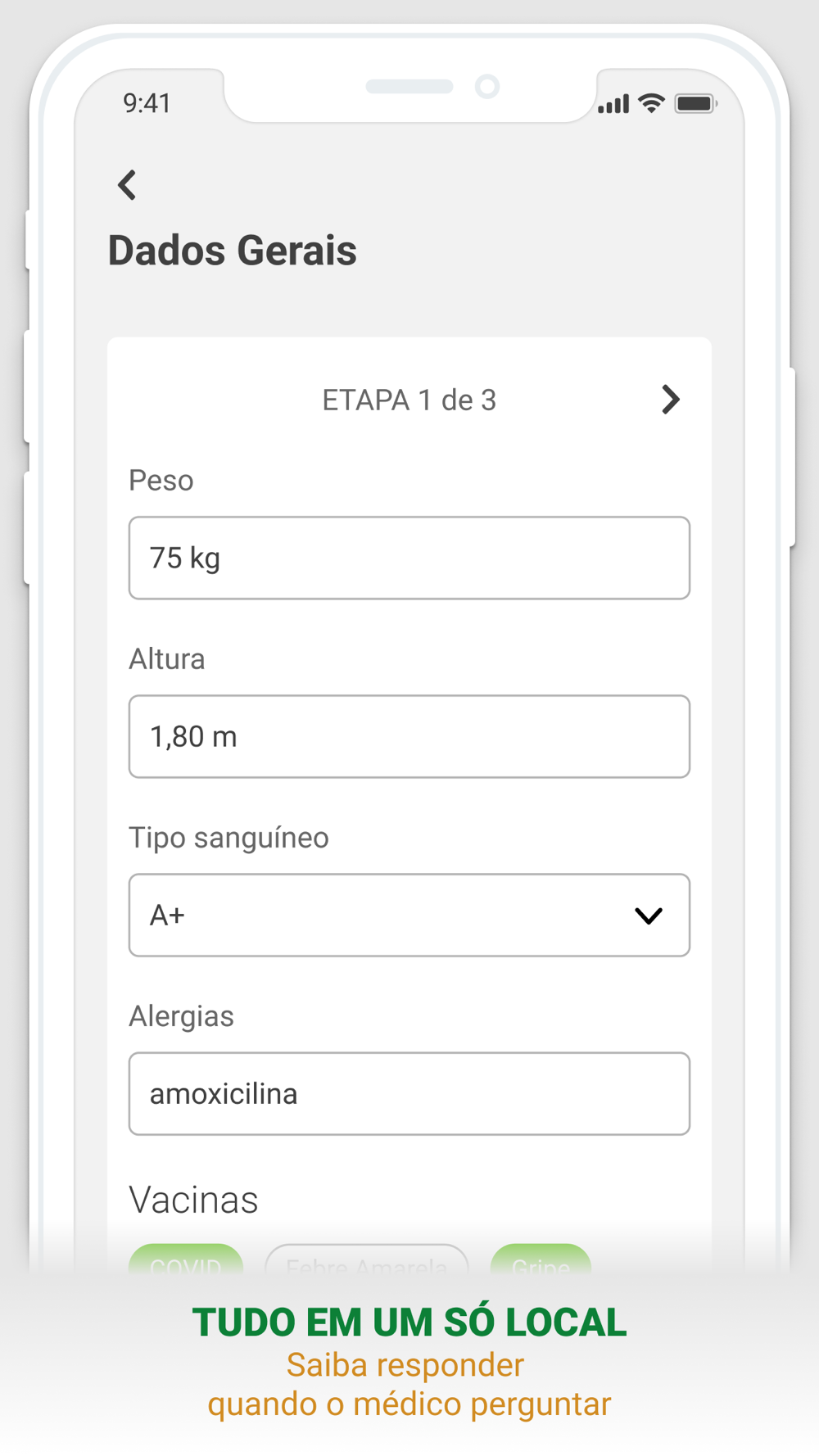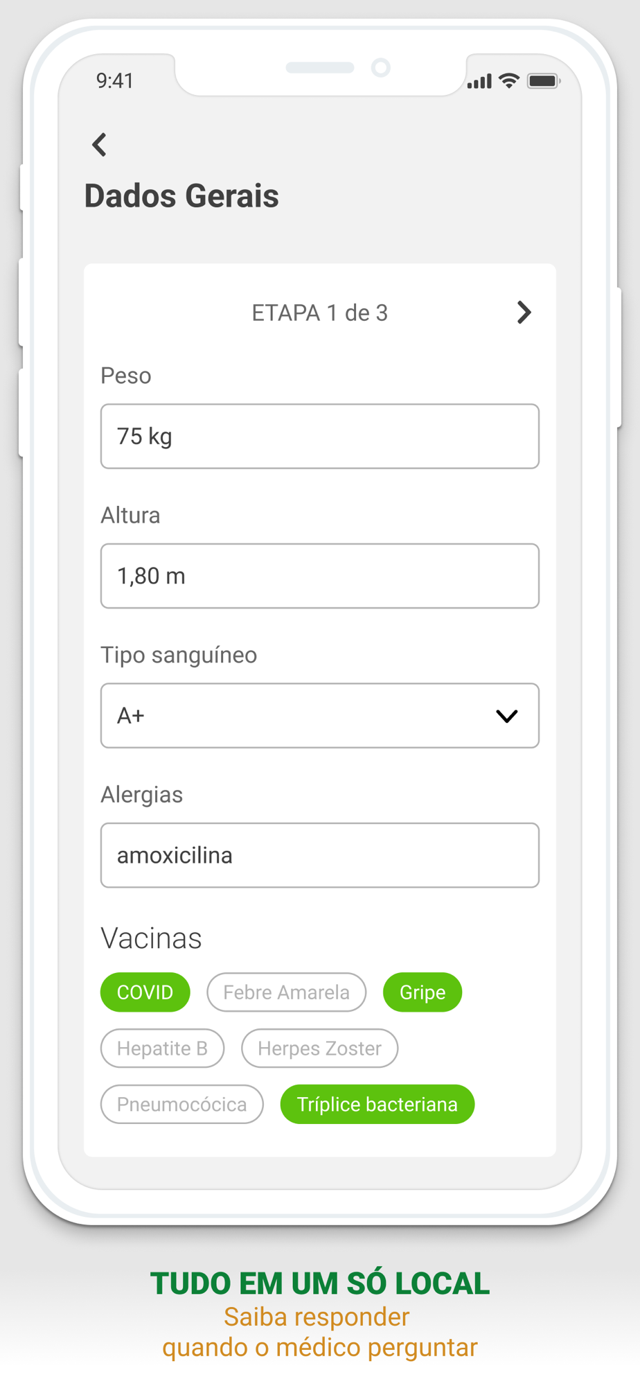 - Compartilhe as informações com quem quiser: Você ficará sempre atualizado sobre o status de saúde do seu parente e poderá dividir as informações com quem desejar. Quando estiver em uma consulta e precisar acessar dados que possam ajudar no atendimento, o médico poderá filtrar as informações mais importantes no histórico de saúde dentro do aplicativo, poupando tempo na consulta e facilitando o diagnóstico.