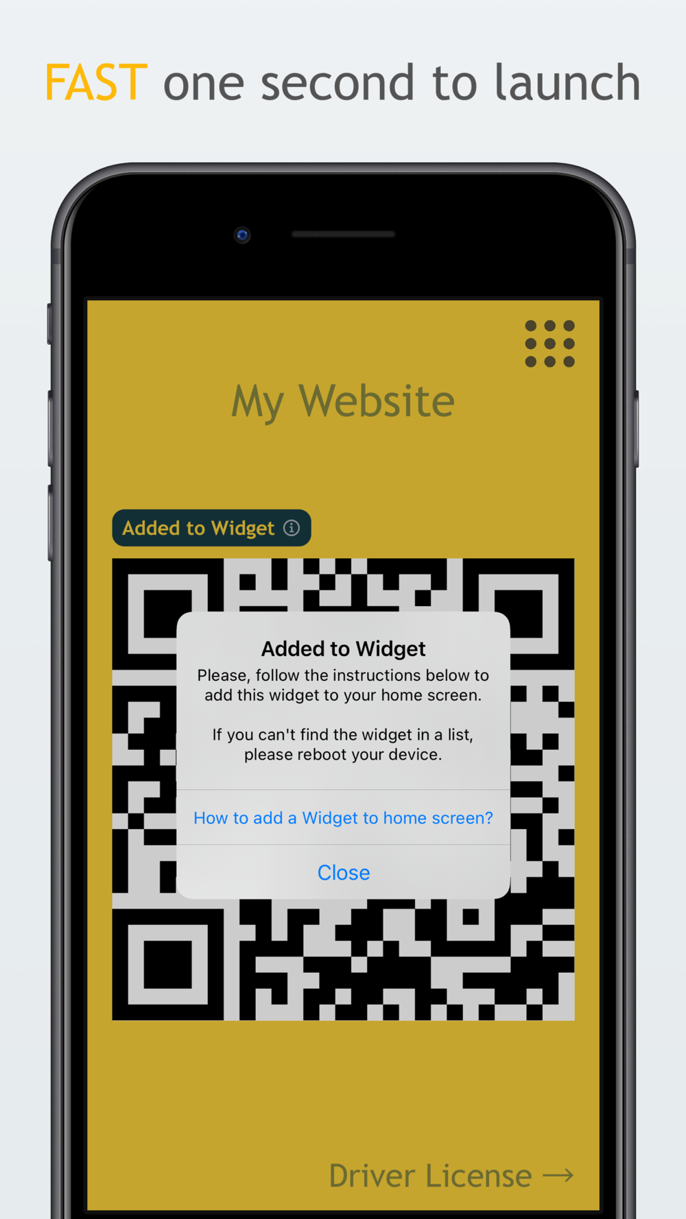 The application allows you to add your QR codes - cinema tickets, ski-passes, etc to a widget on home screen. You can also add any other documents - driver license, student id or something else. The application is small and fast - it launches less than in a second.