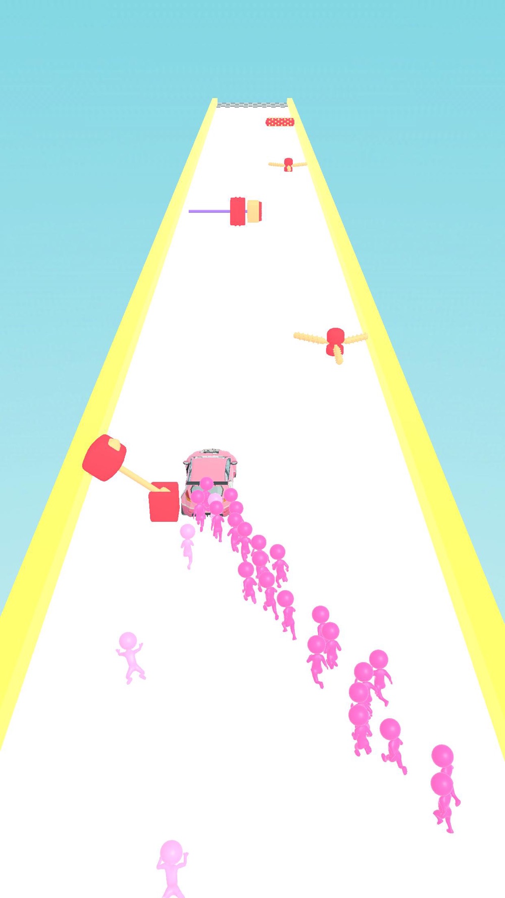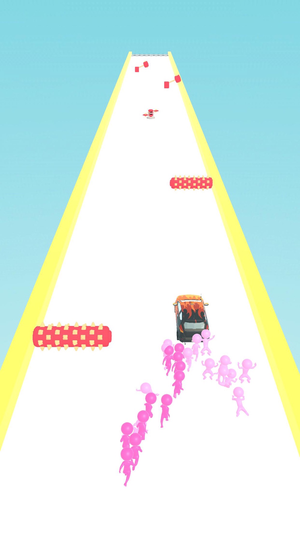 Push the car until the end. Don't forget, people have limited power. It's a hypercasual kind of funny games genre.