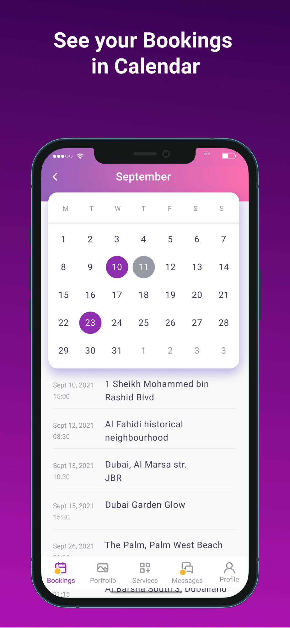 You can visually track the days when you have scheduled photo sessions with the display of the location and time. Plan your work and track your time.